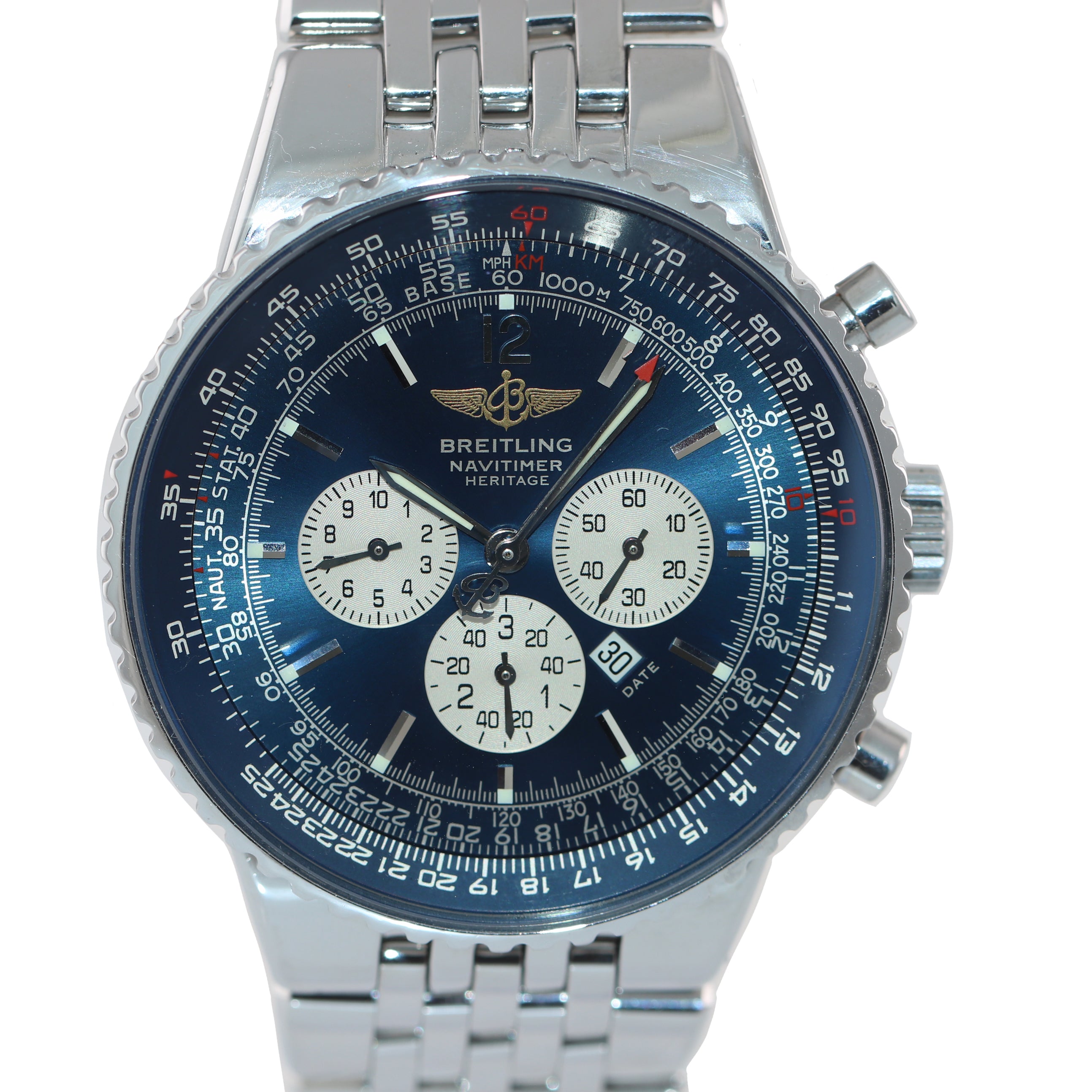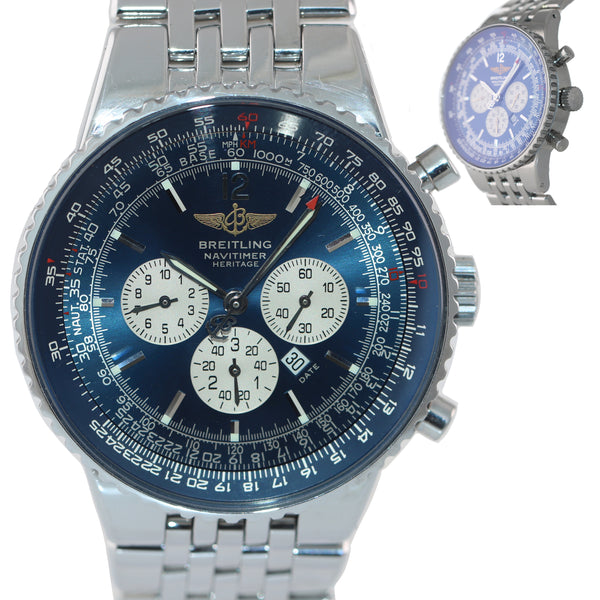 MINT Breitling Navitimer Heritage A35350 Blue Stainless Chronograph 43mm A35340 Watch