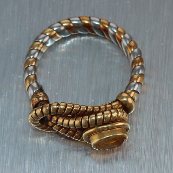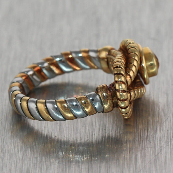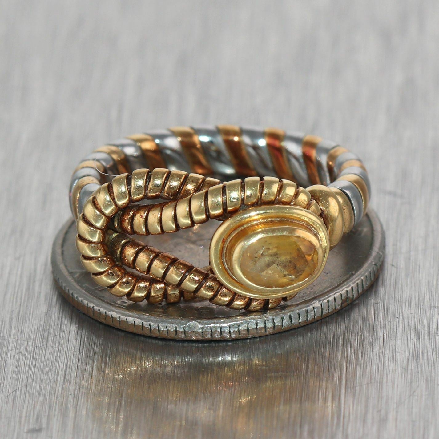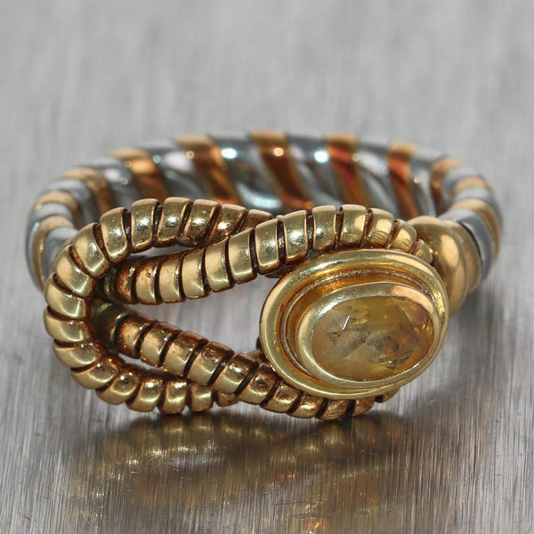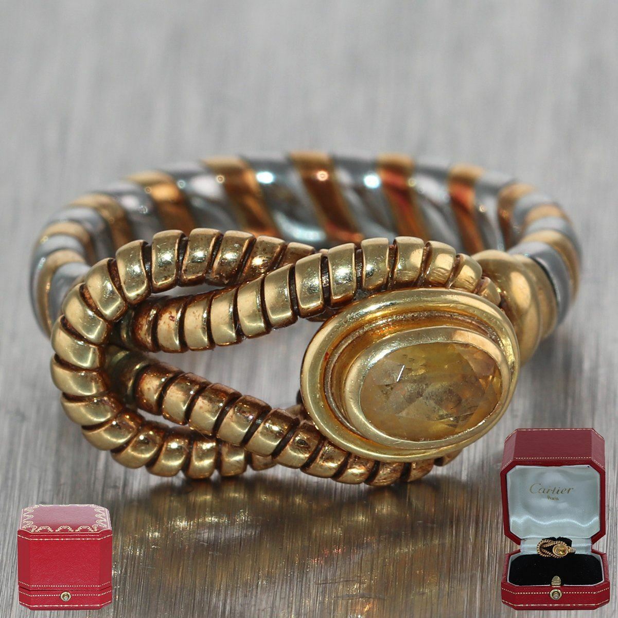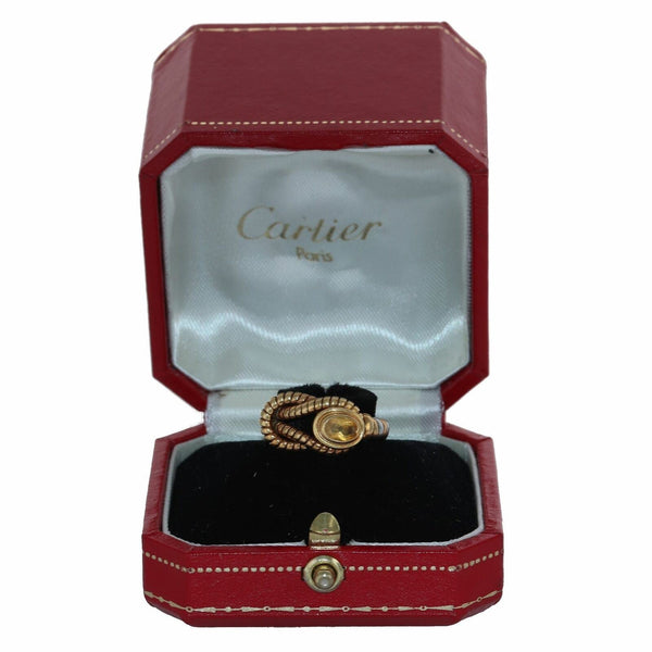 For your consideration, an authentic Cartier 18k Yellow Gold Stainless Steel Hercules Knot Citrine Ring. It will come in a lovely ring box for a perfect presentation and our unconditional 30 day money back return policy. G1