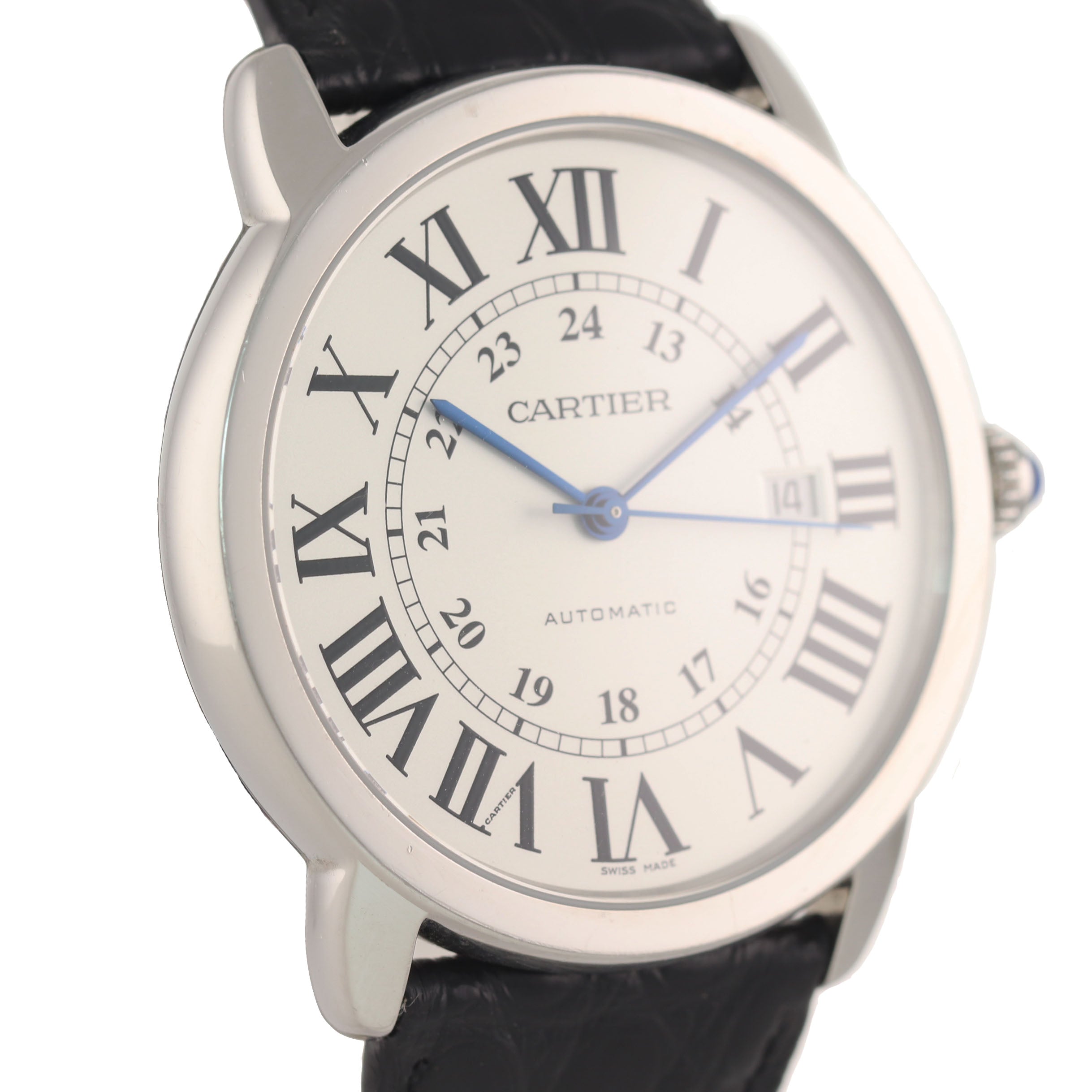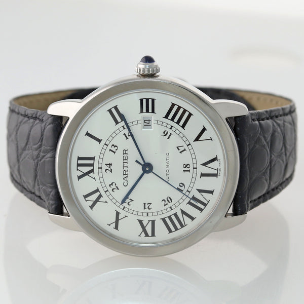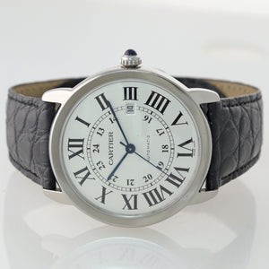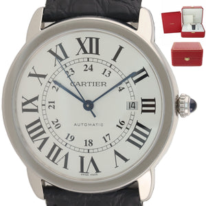 Cartier Ronde Solo Steel 3517 42mm XL Automatic Date Silver Roman Watch Papers