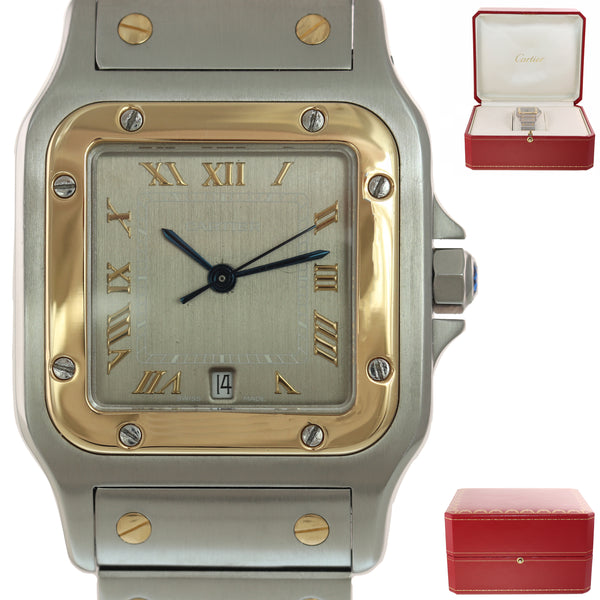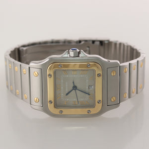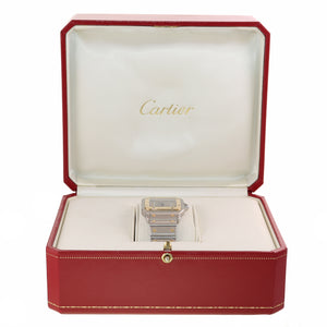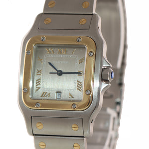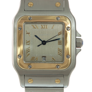 Cartier Santos 18k Gold Steel Two Tone 29mm Silver Roman Quartz 187901 Watch