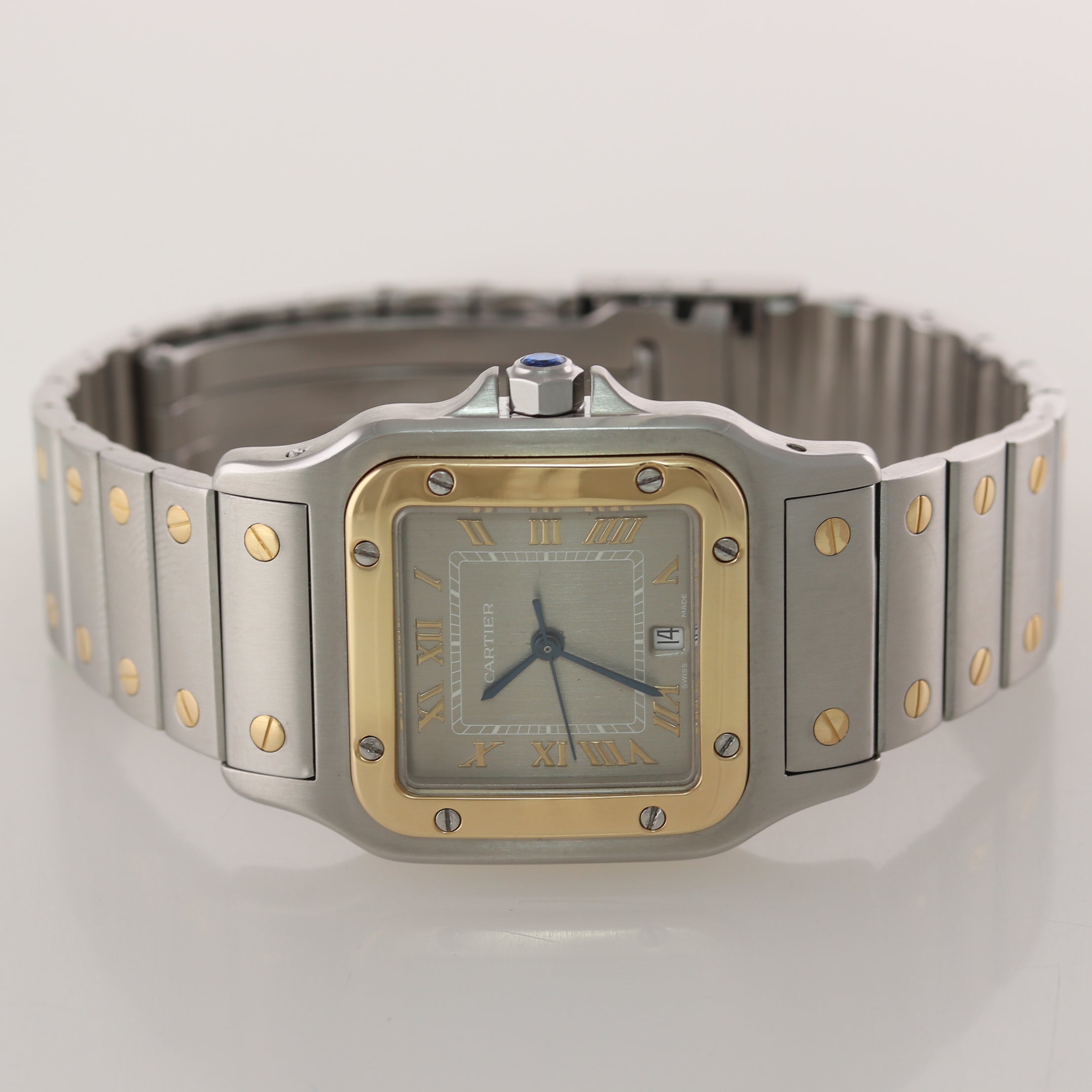 | Band | Original Cartier Stainless Steel & 18k Yellow Gold Santos Bracelet with a Dual Deployment Clasp |