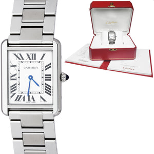Cartier Tank Solo Large Stainless Steel Roman Quartz Date 3169 / W5200014 Watch