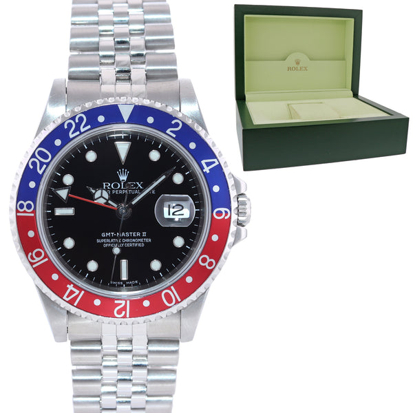 | Dial | Rolex Black Dial with date at the 3 o'clock and a Red 24-hour GMT hand. |