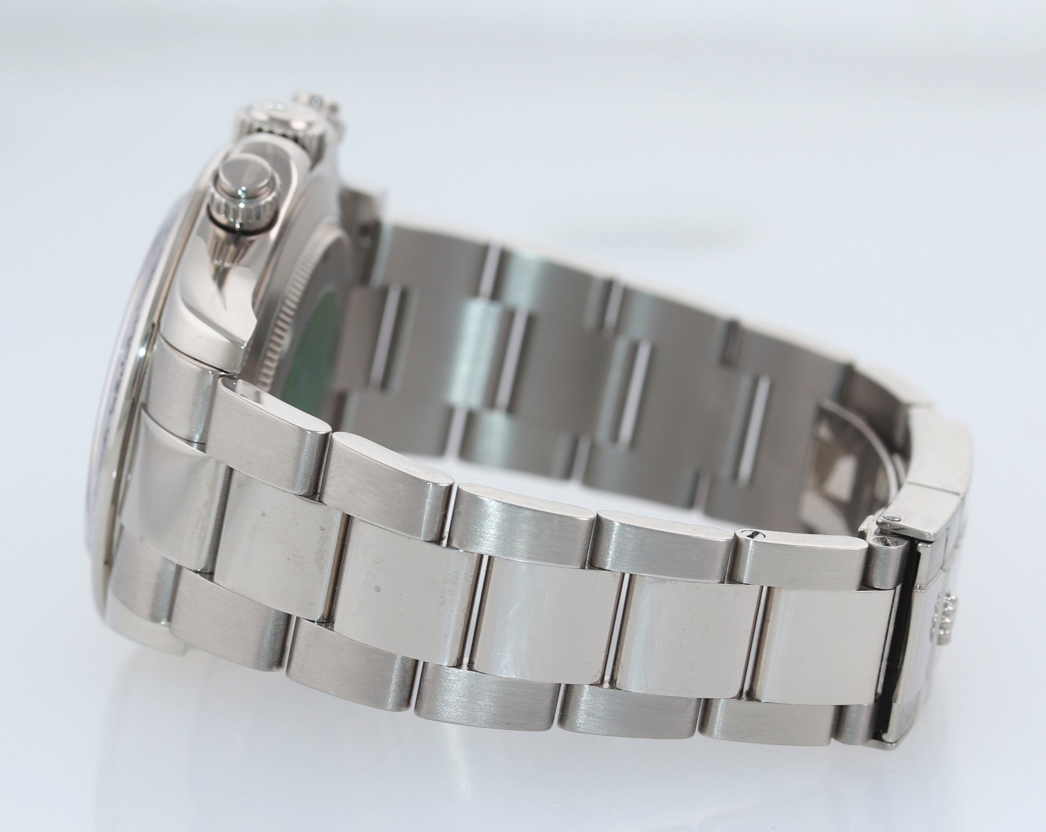 | Band | Original Rolex White Gold Oyster Bracelet with an 18K White Gold Flip Lock Deployment Clasp. |