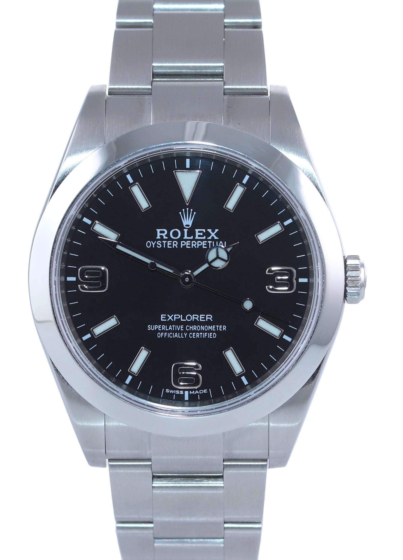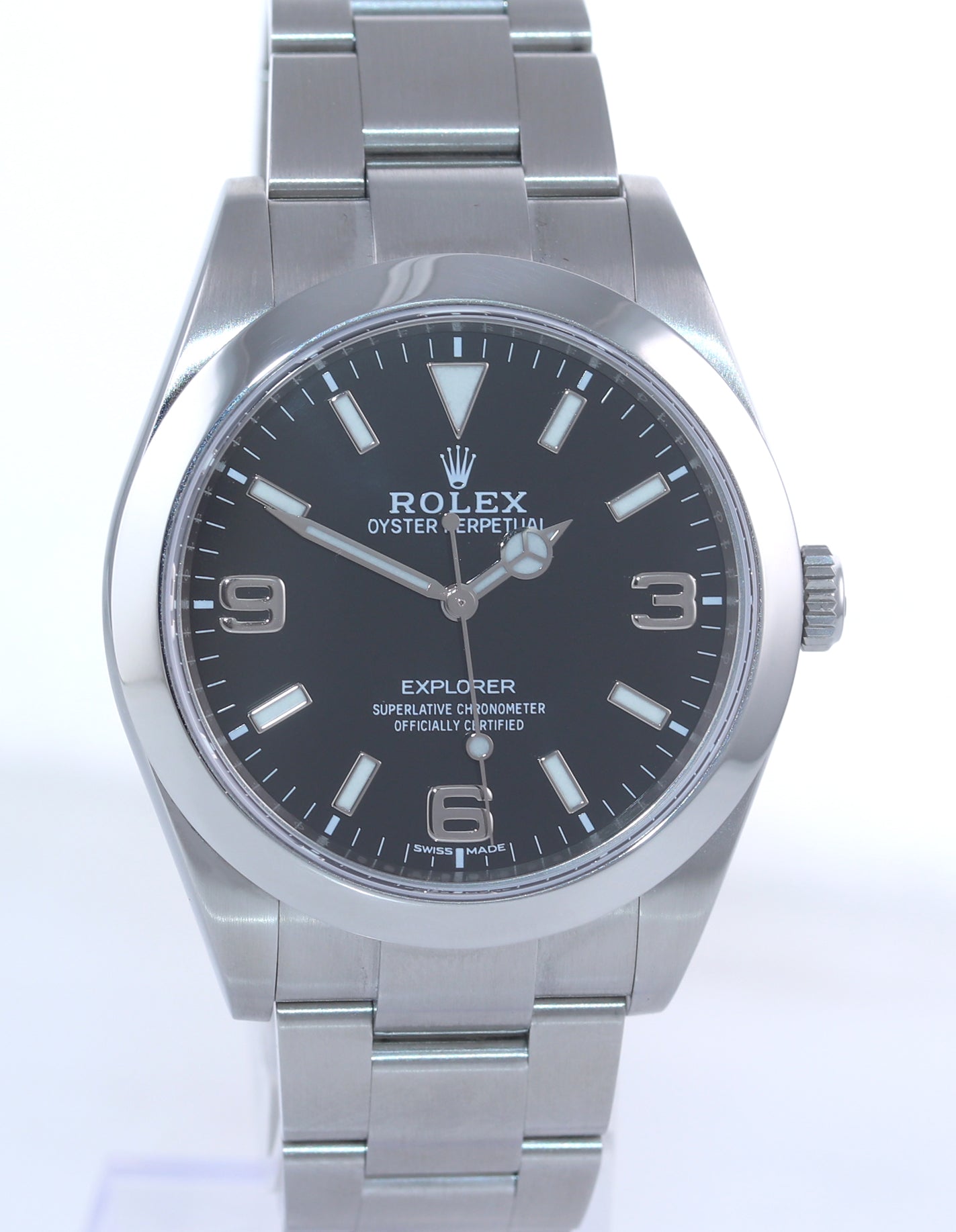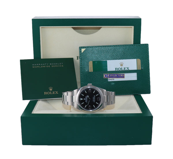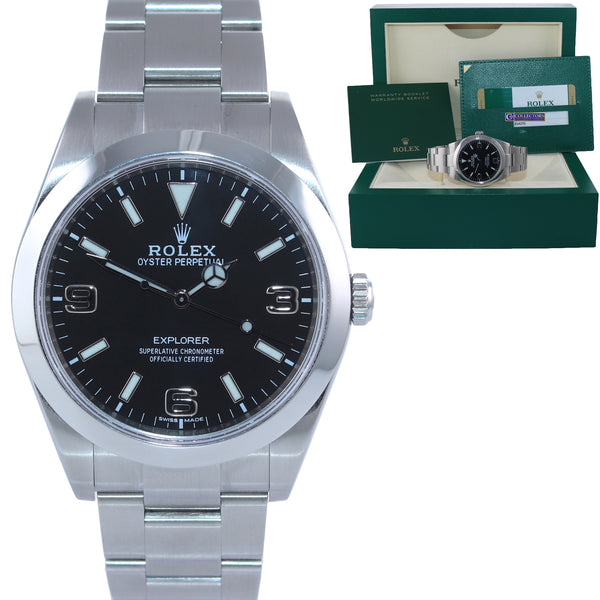 MINT PAPERS Rolex Explorer 214270 Black Arabic Blue LUME 3-6-9 Steel 39mm Watch.