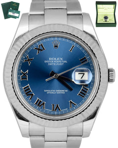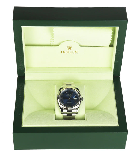 Rolex Datejust II 41MM Blue Azurro Roman 116334 Steel 18K White Gold Watch