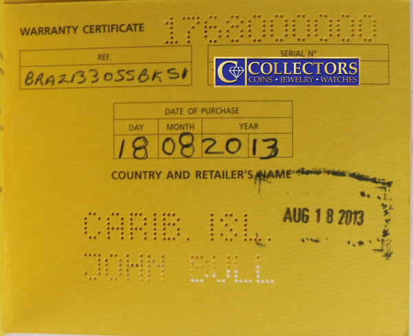 One-Year Warranty ($400 Value - Included with your purchase). Collectors Coins & Jewelry warrants the dependable functioning of this entire watch for the period of one year from the date of purchase. This warranty does not cover normal wear and tear, loss, theft, tampering, mistreatment or modification through the addition or subtraction of parts or accessories not supplied by Collectors Coins & Jewelry. In the event of a malfunction arising within the warranty period, we will remedy the defect at no cost to the consumer, once the consumer delivers the watch to our office location in Smithtown, NY address listed to the right of this page. This warranty will be valid only if the consumer holds a certificate of authenticity from Collectors Coins & Jewelry of Smithtown or has another form of proof of purchase.