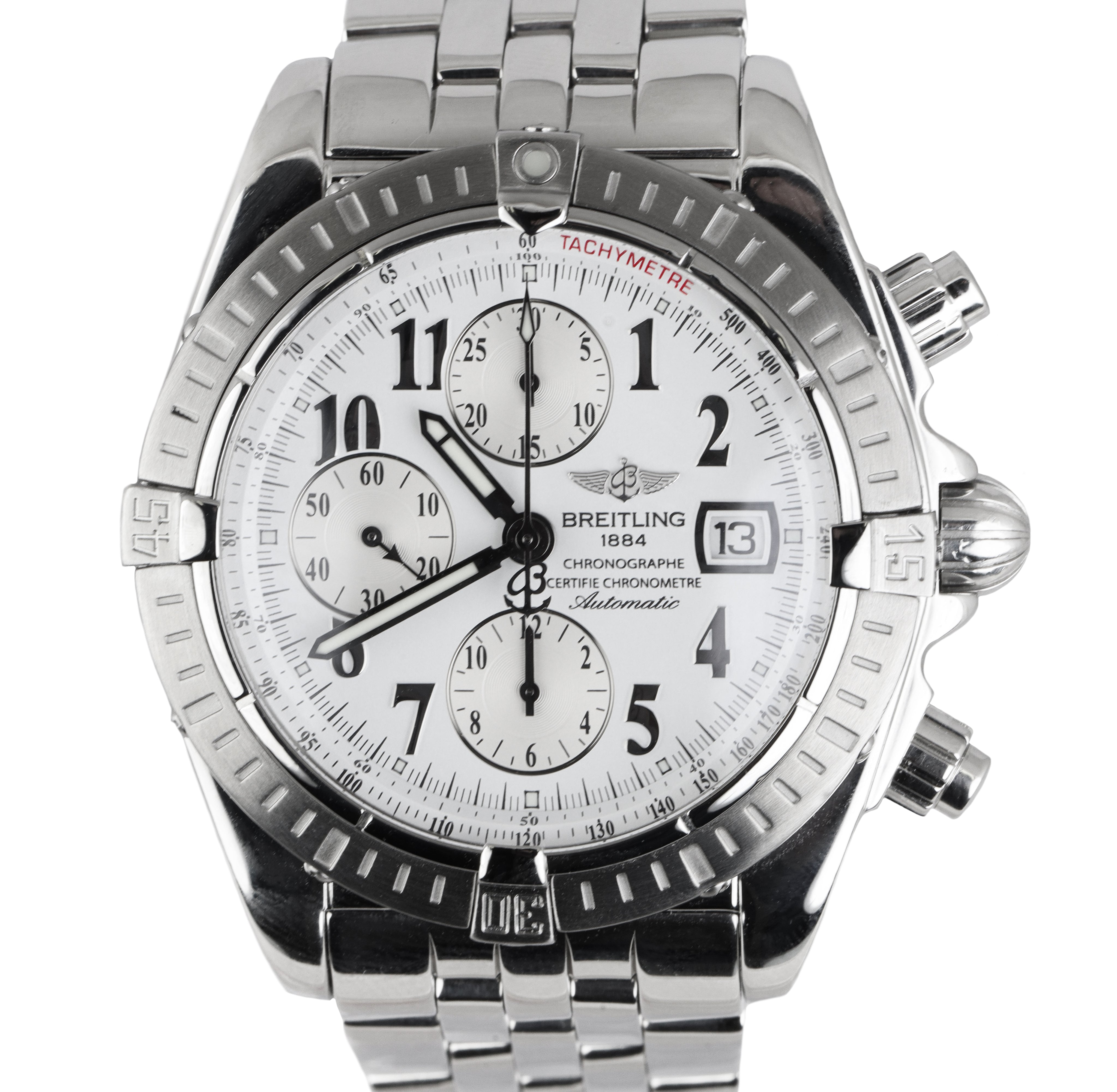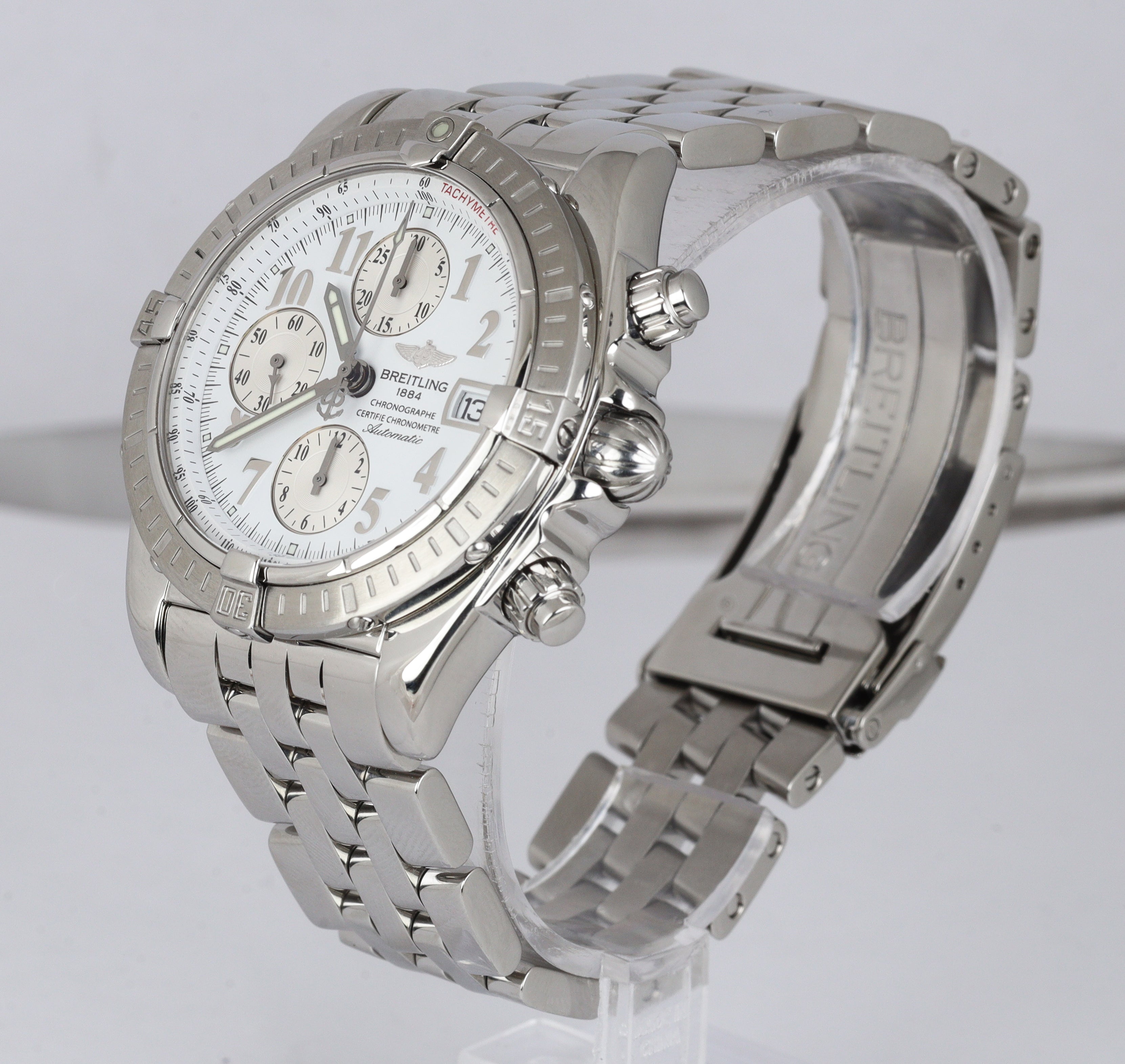 | Dial | Original Breitling White Arabic Chronograph Dial with luminous indexes/hands and the date at the 3 o'clock |