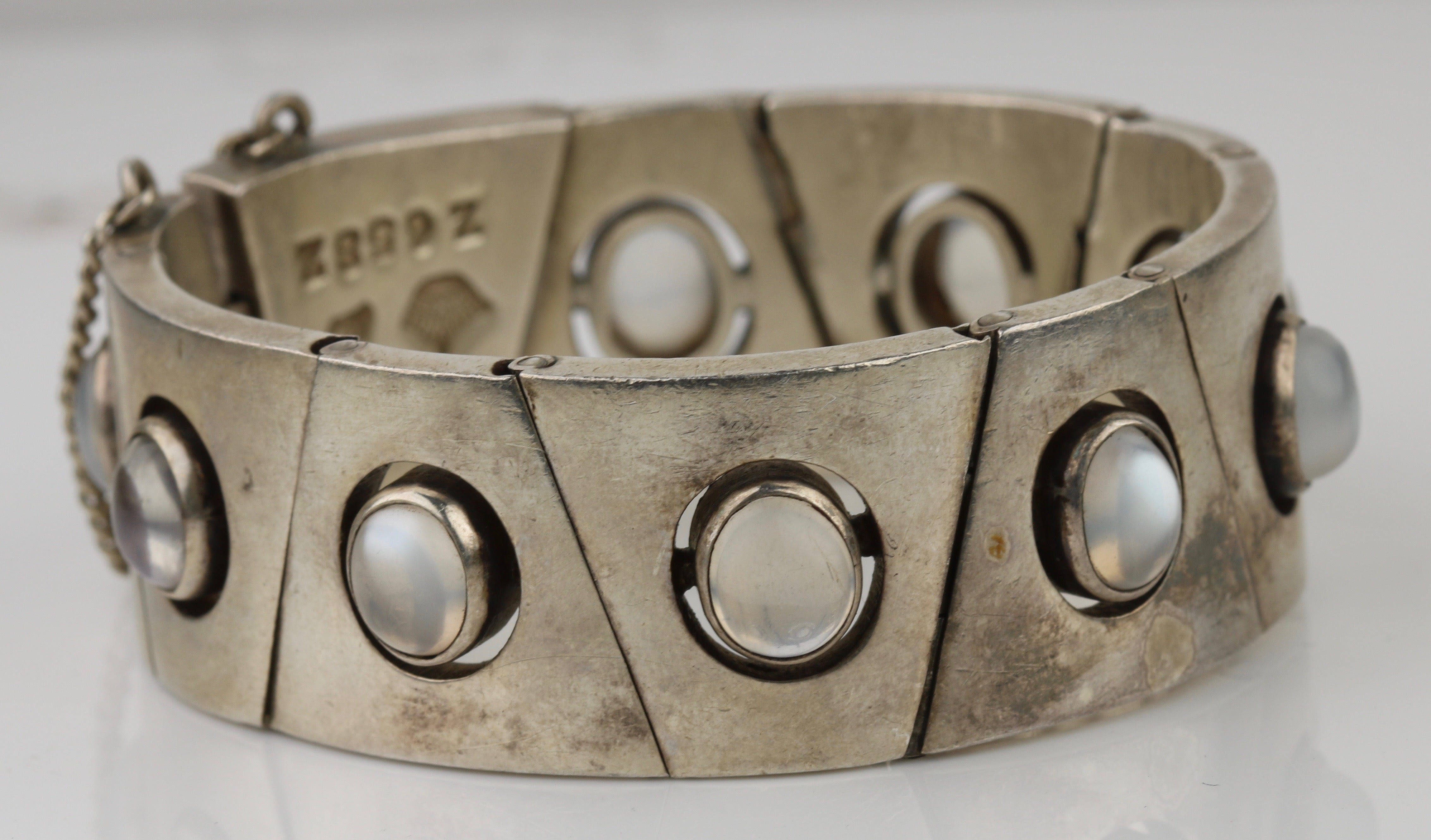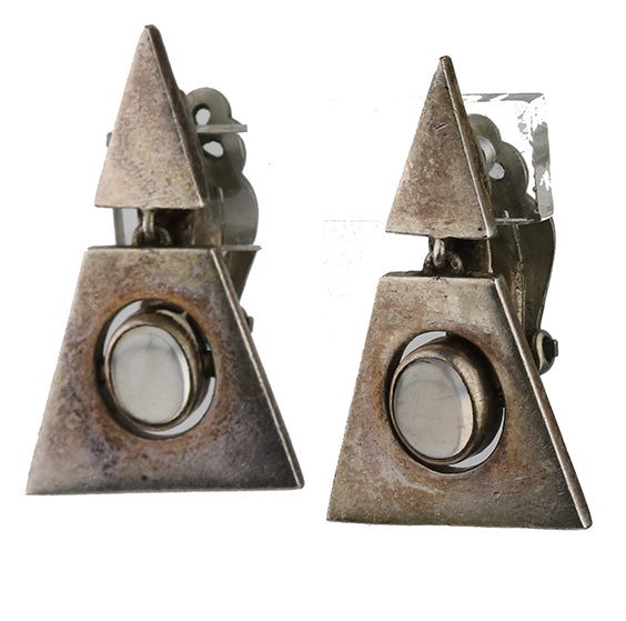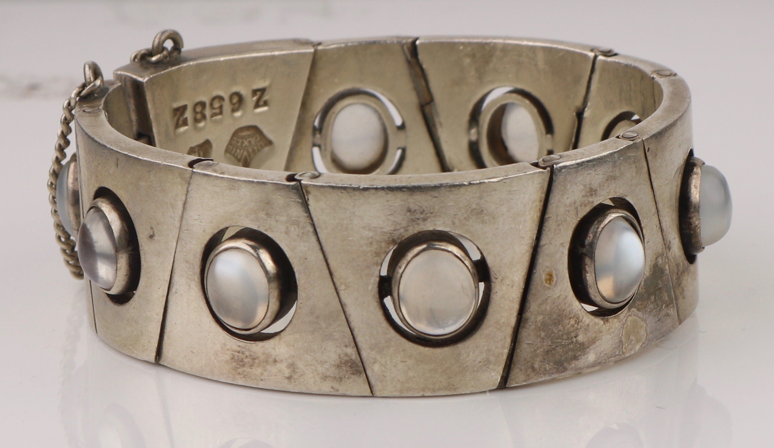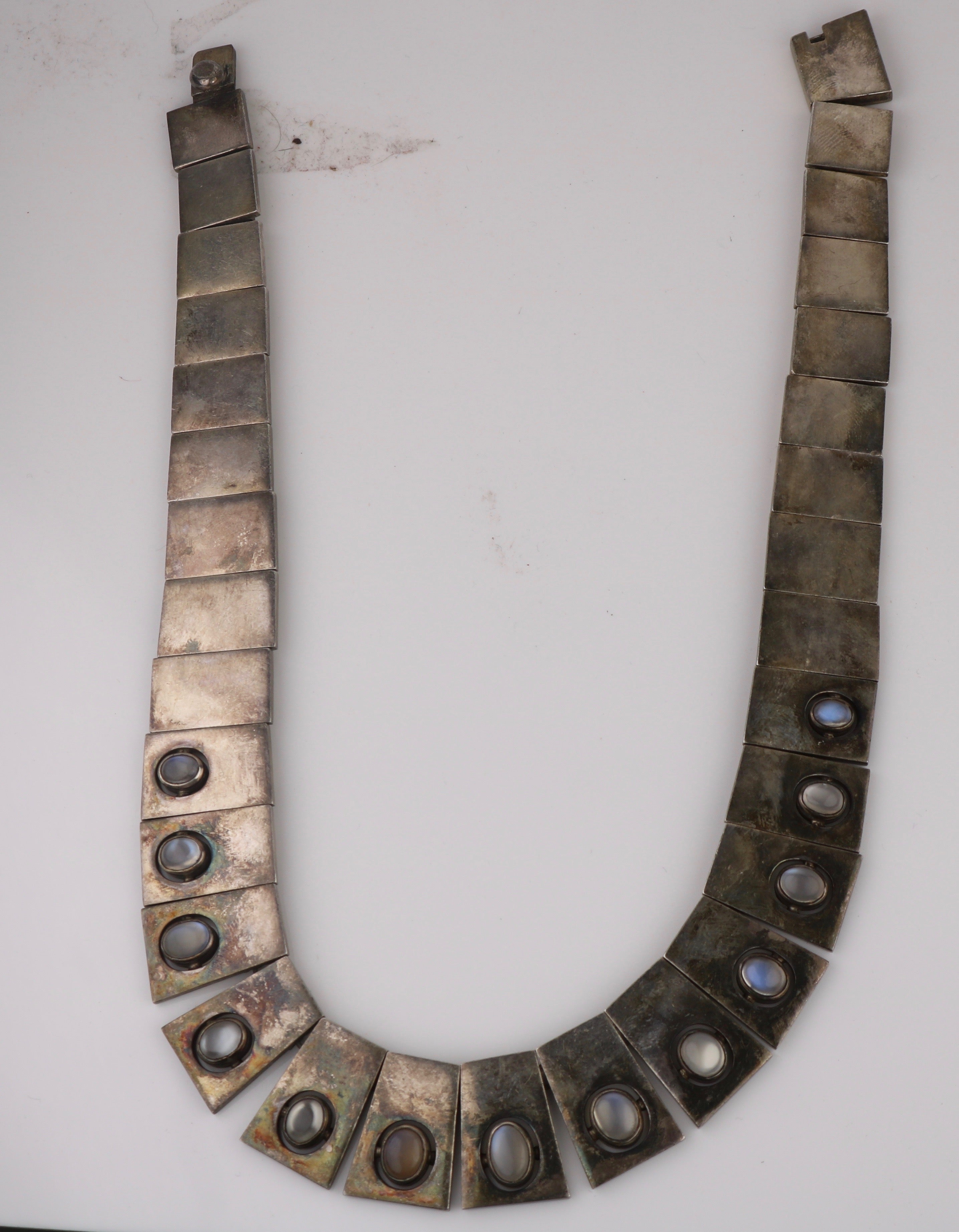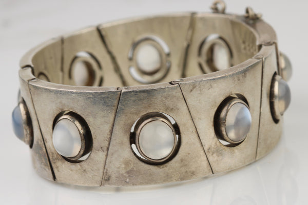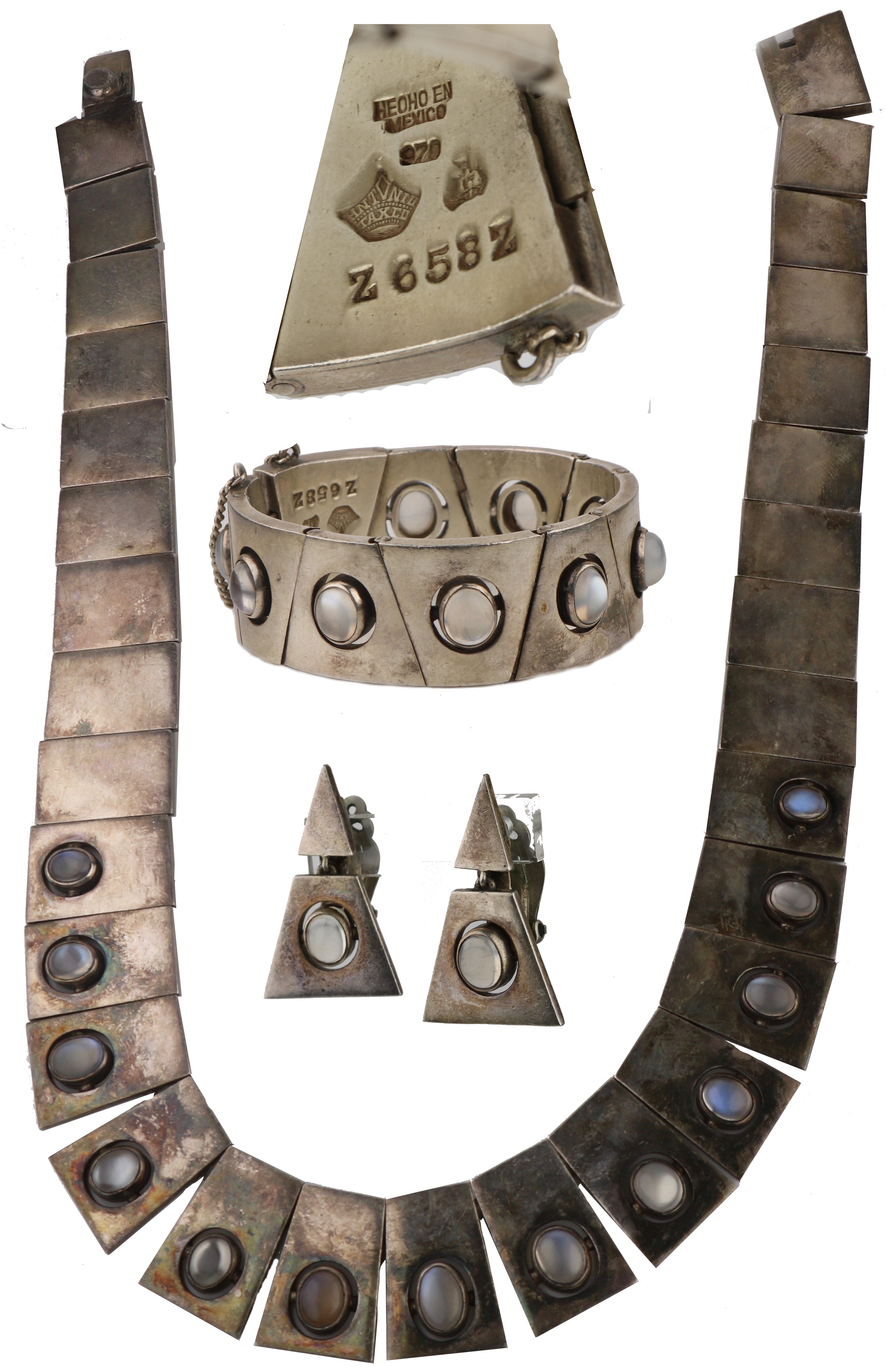 Vintage Antonio Pineda 970 Silver Moonstone Taxco Necklace Earring Bangle Set