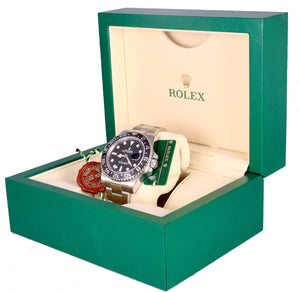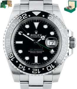 | Dial | Original Rolex Black Chromalight Index Dial with date at the 3 o'clock and a Green 24-hour GMT (second time-zone) hand. |