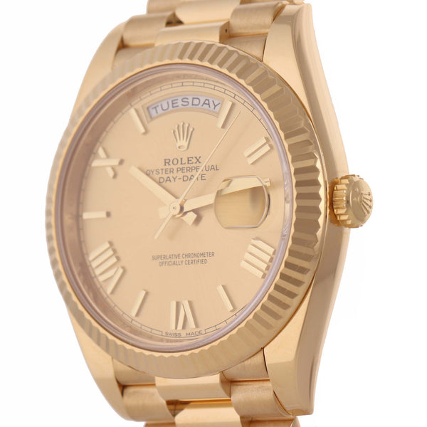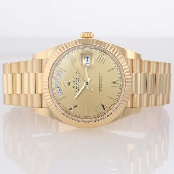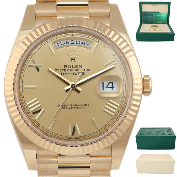 PAPERS 2018 Rolex Day Date 40 18k Gold President Champagne Roman 228238 Watch