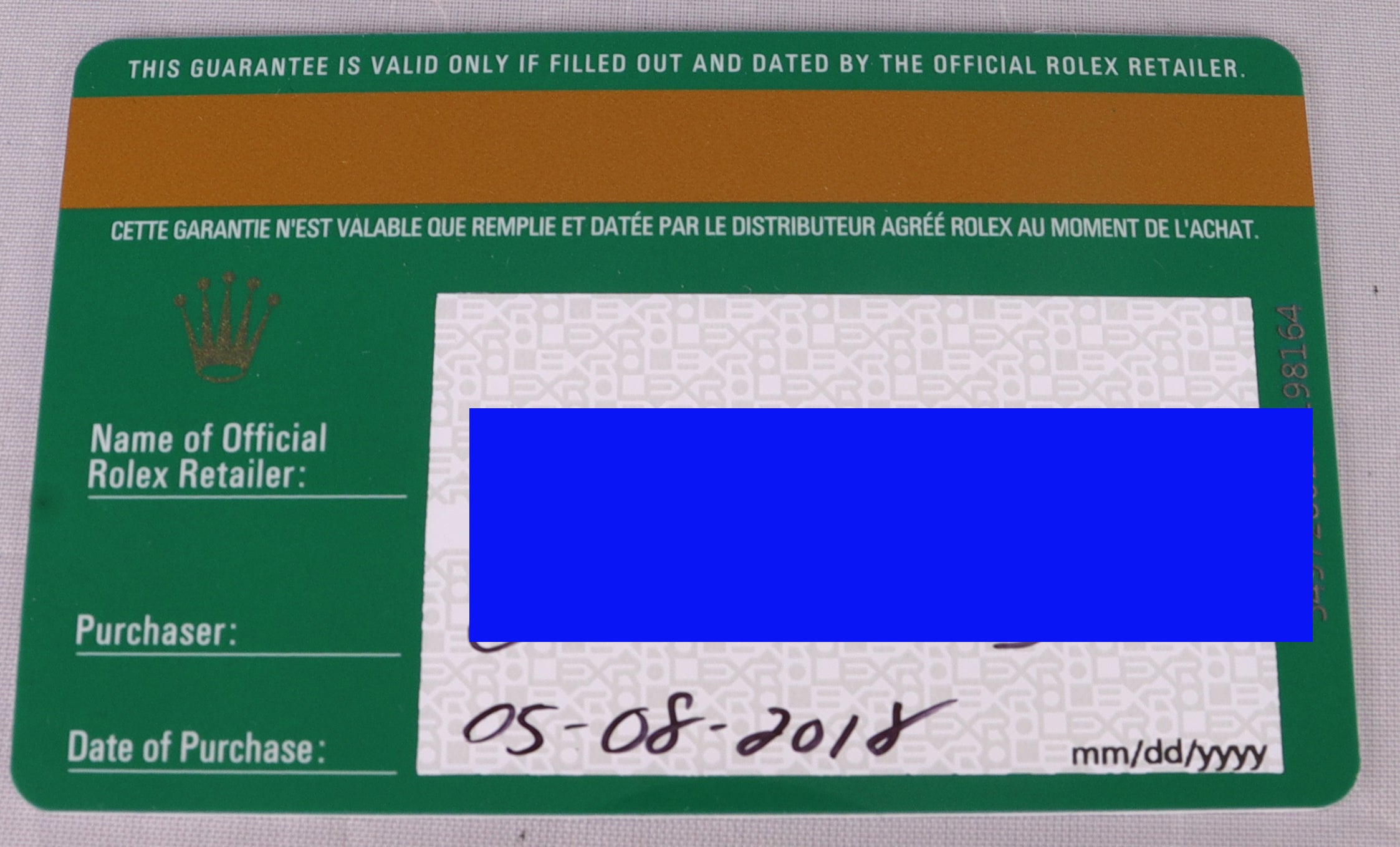 Fully-Transferable International Rolex Warranty Valid through August of 2023 |