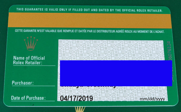 Fully-Transferable International Rolex Warranty Valid Through April of 2024 |
