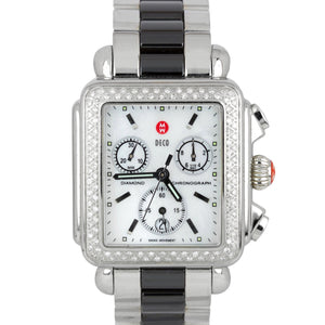 MICHELE Deco .60CT Diamond Stainless Steel Black Quartz Chronograph MW06A01A1025