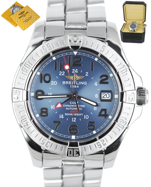 | Dial | Original Breitling Blue Luminous Arabic Numeral Dial with luminous hands as well as the date at the 3 o'clock |