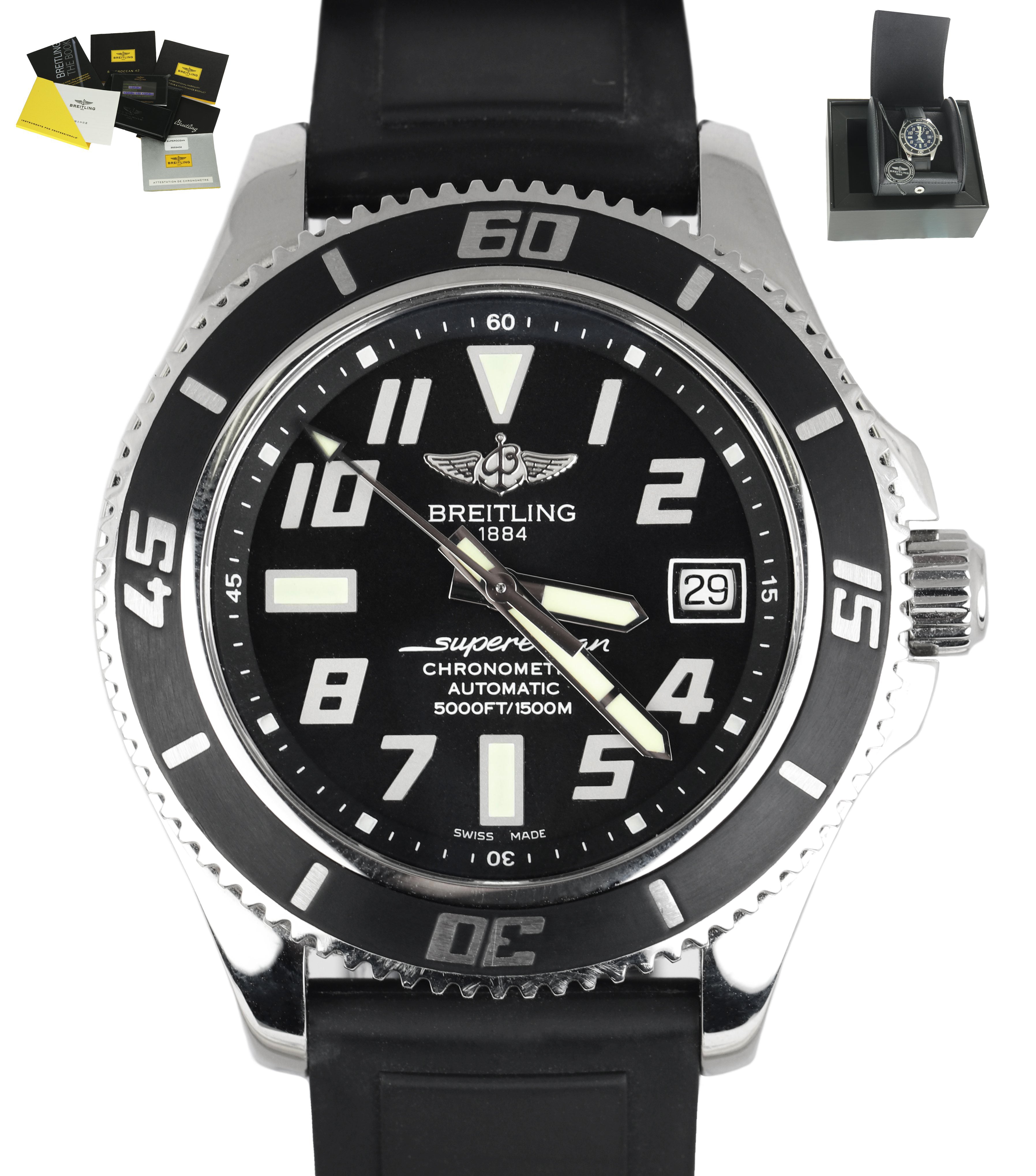 Men's Breitling SuperOcean 42mm Stainless Black Date Watch