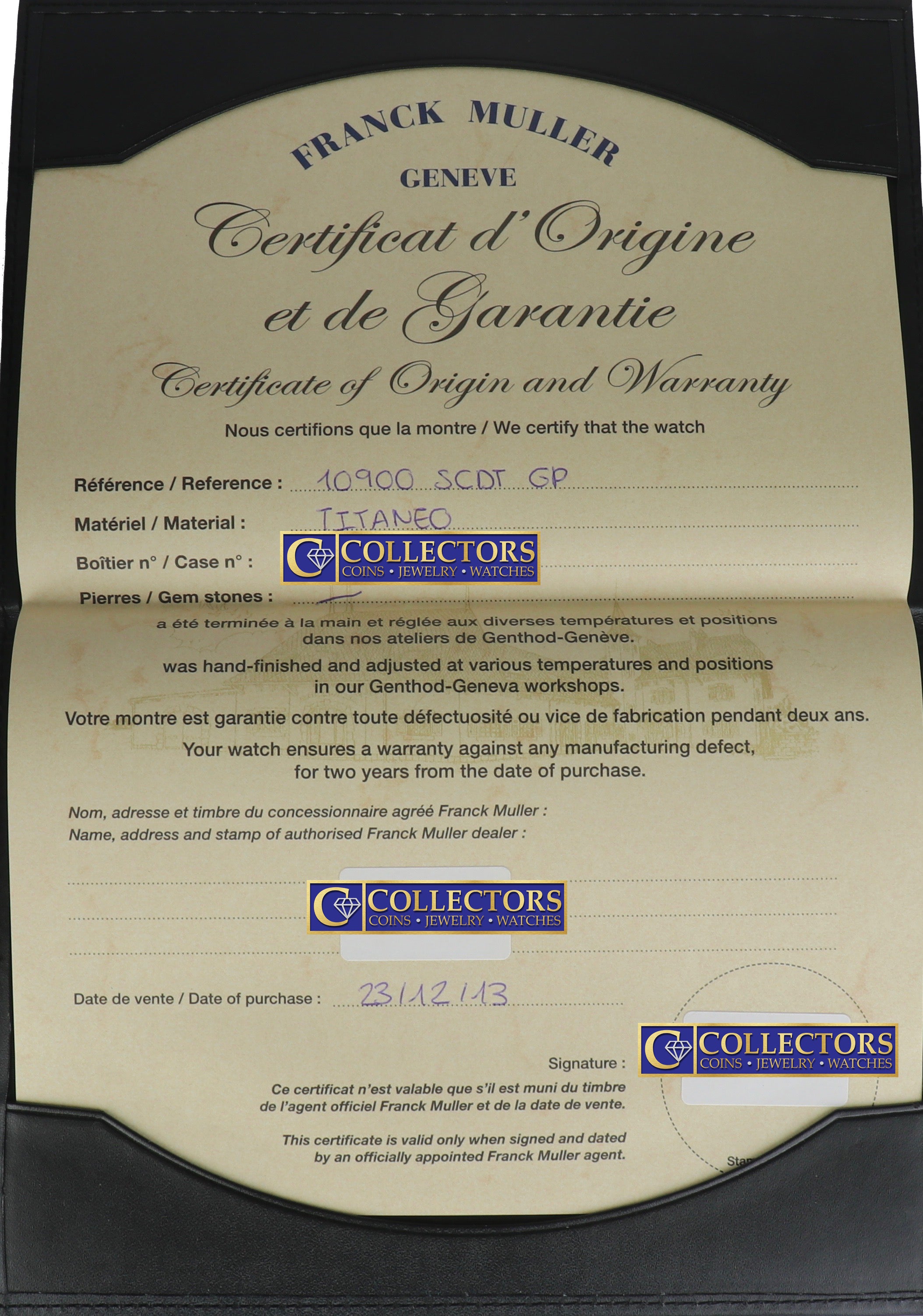 | Bezel | Original Frank Muller Black Titanium Bezel | |