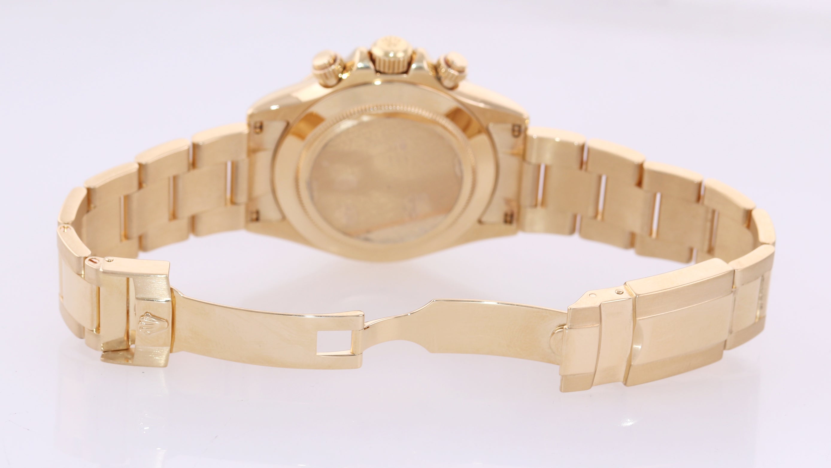 | Bezel | Original Rolex 18K Yellow Gold Bezel with an engraved tachymetric scale. |