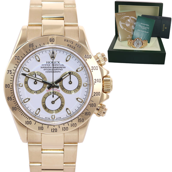 MINT Rolex Daytona 116528 White Dial Chronograph 18k Gold 40mm Watch Box