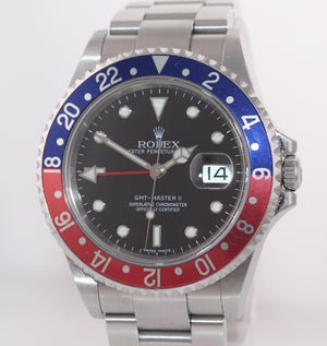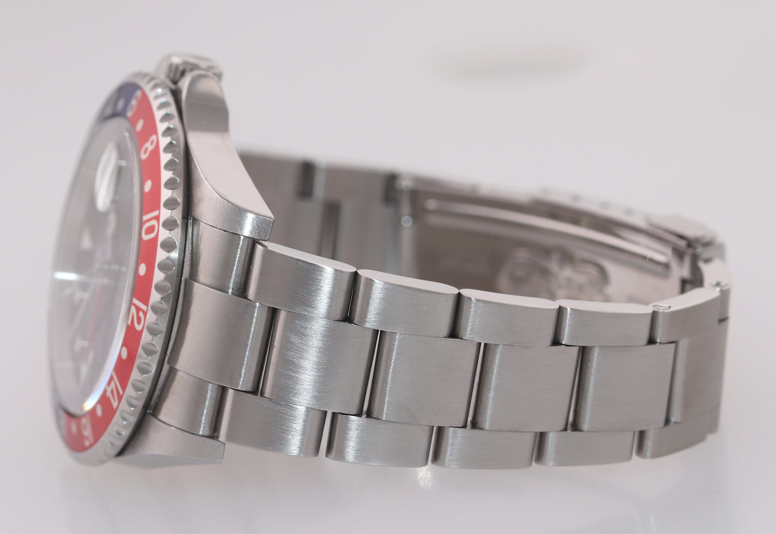UNPOLISHED Rolex GMT-Master II Pepsi Steel Blue 16710 40mm Error Stick Dial Watch