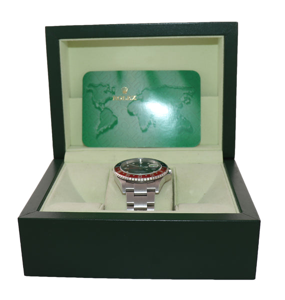 | Dial | Original Rolex Black Error Stick Index Dial with date at the 3 o'clock and a Red 24-hour GMT hand |