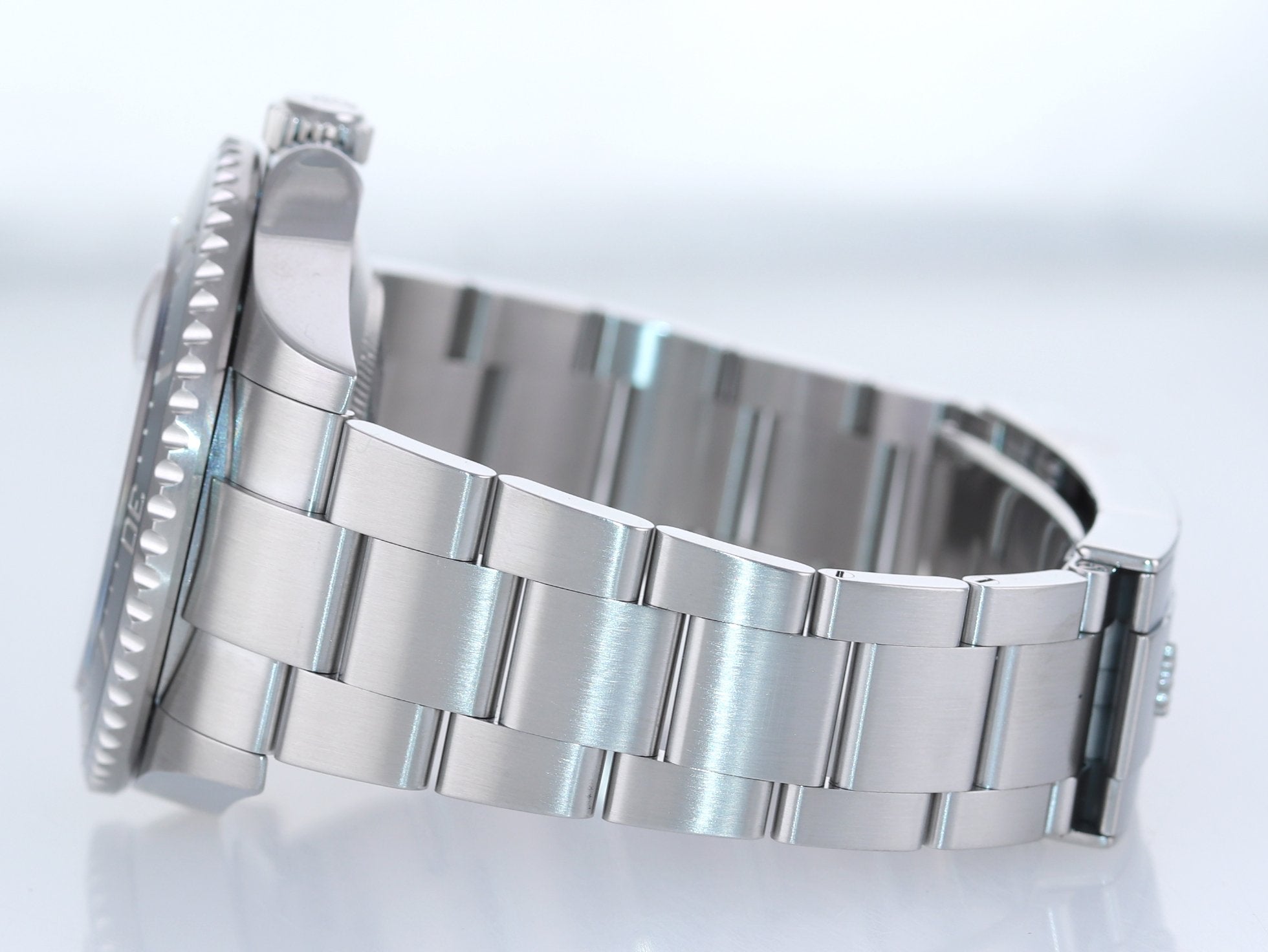 Stainless steel oyster bracelet with folding Oysterlock safety clasp and ROLEX Glidelock extension system with a Fliplock extension link |