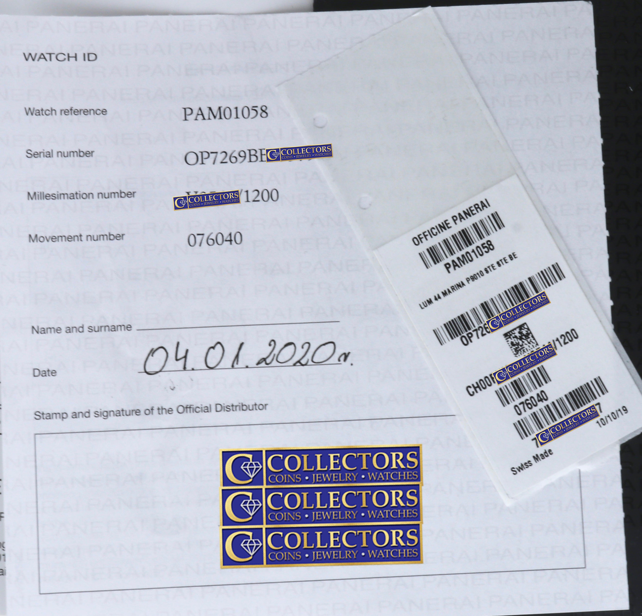 Fully Transferable International Panerai Warranty Valid Through January of 2022 |