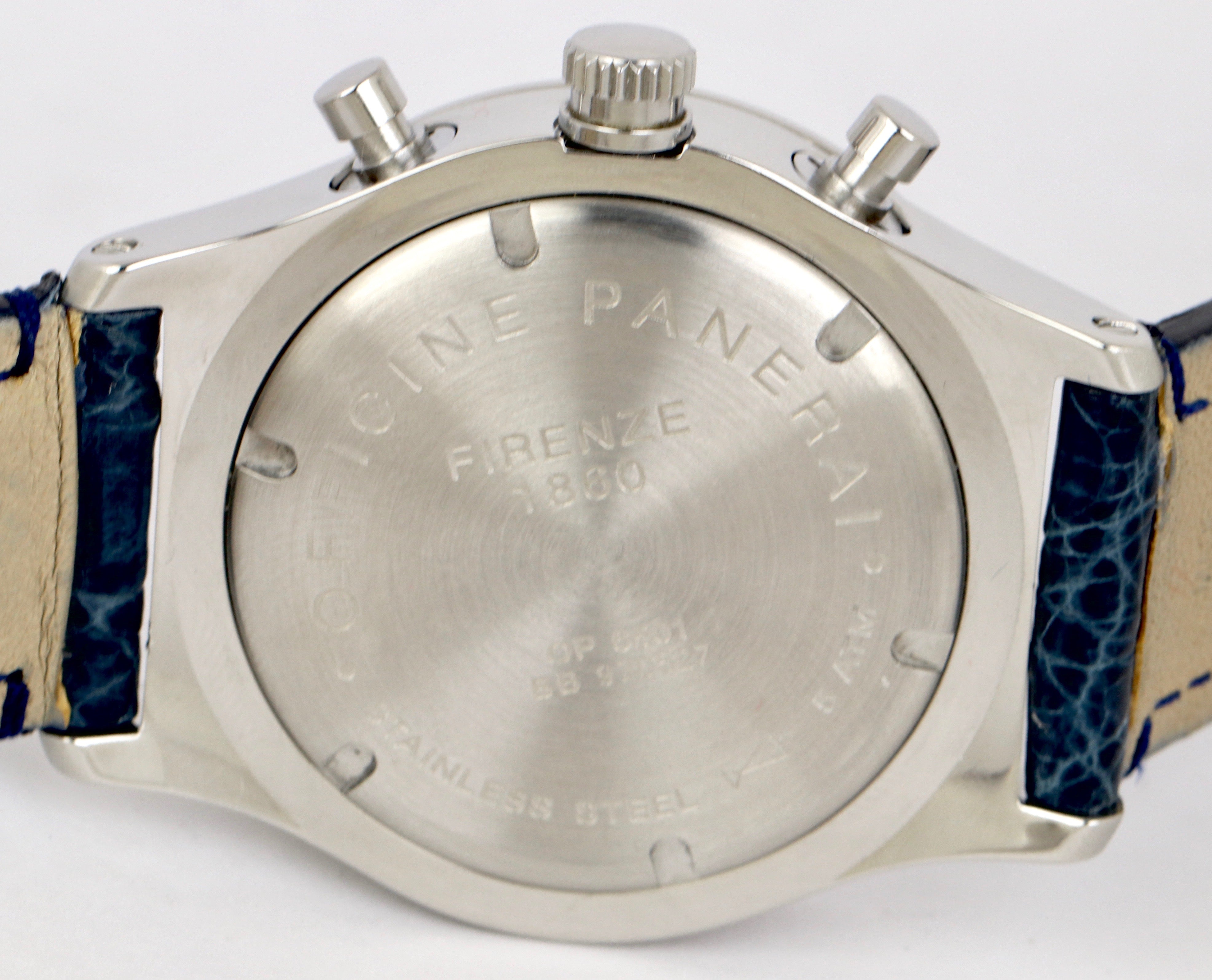 | Band | Original Panerai Adjustable Blue Leather Strap with a Stainless Steel Tang Buckle |