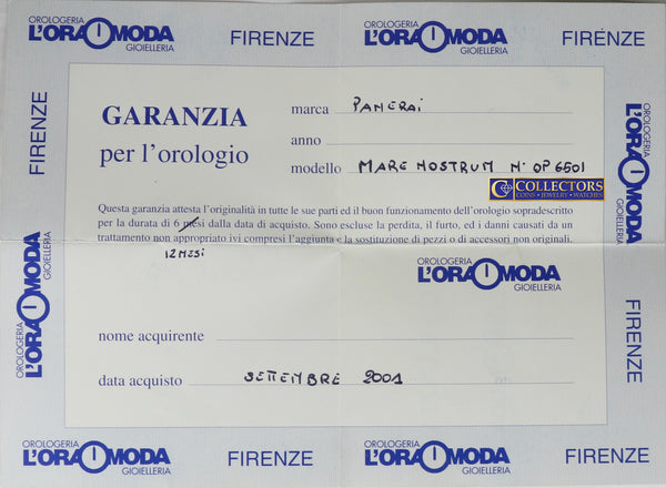 | Movement | Original Panerai Swiss Mechanical: Hand Winding Movement |