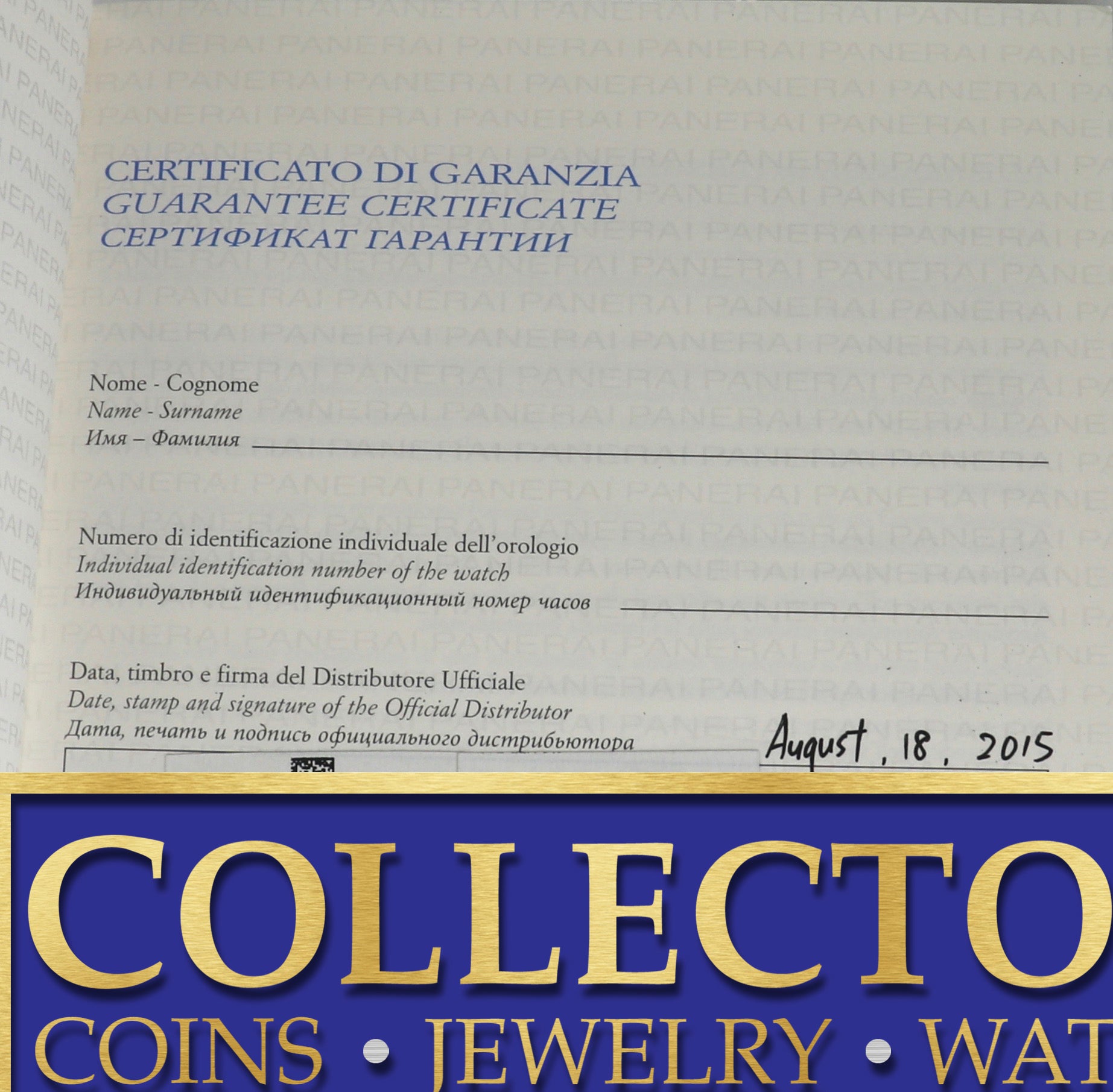 | Band | Original Panerai Adjustable Brown Leather Strap with a Stainless Steel Tang Buckle |