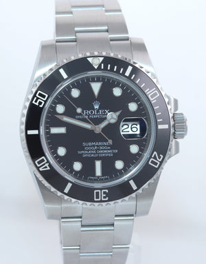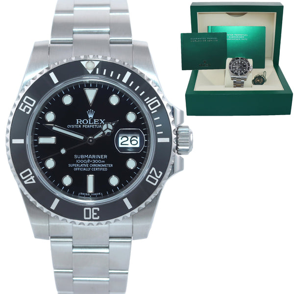 PAPERS 2016 Rolex Submariner Date 116610 Steel Black Ceramic Bezel Watch