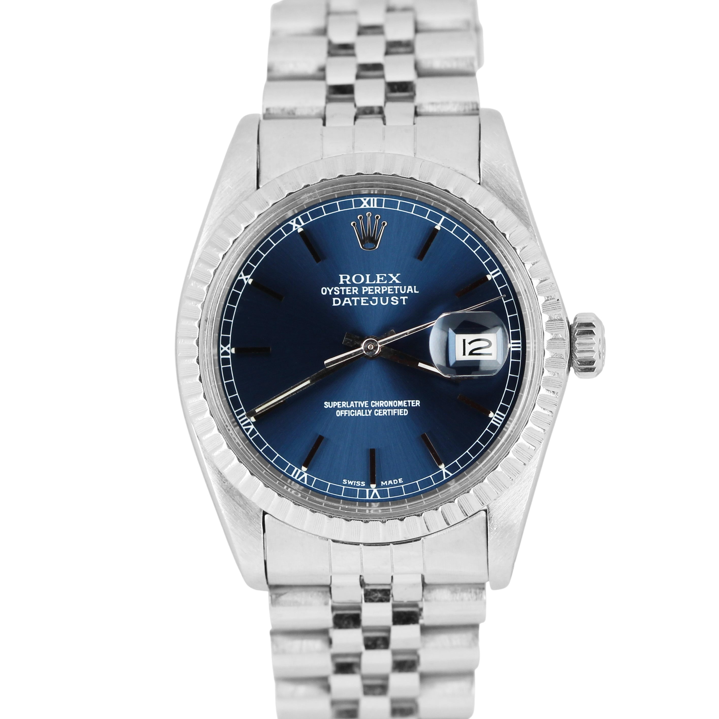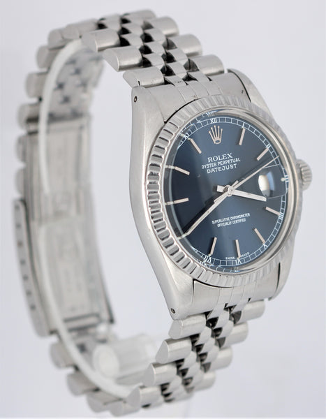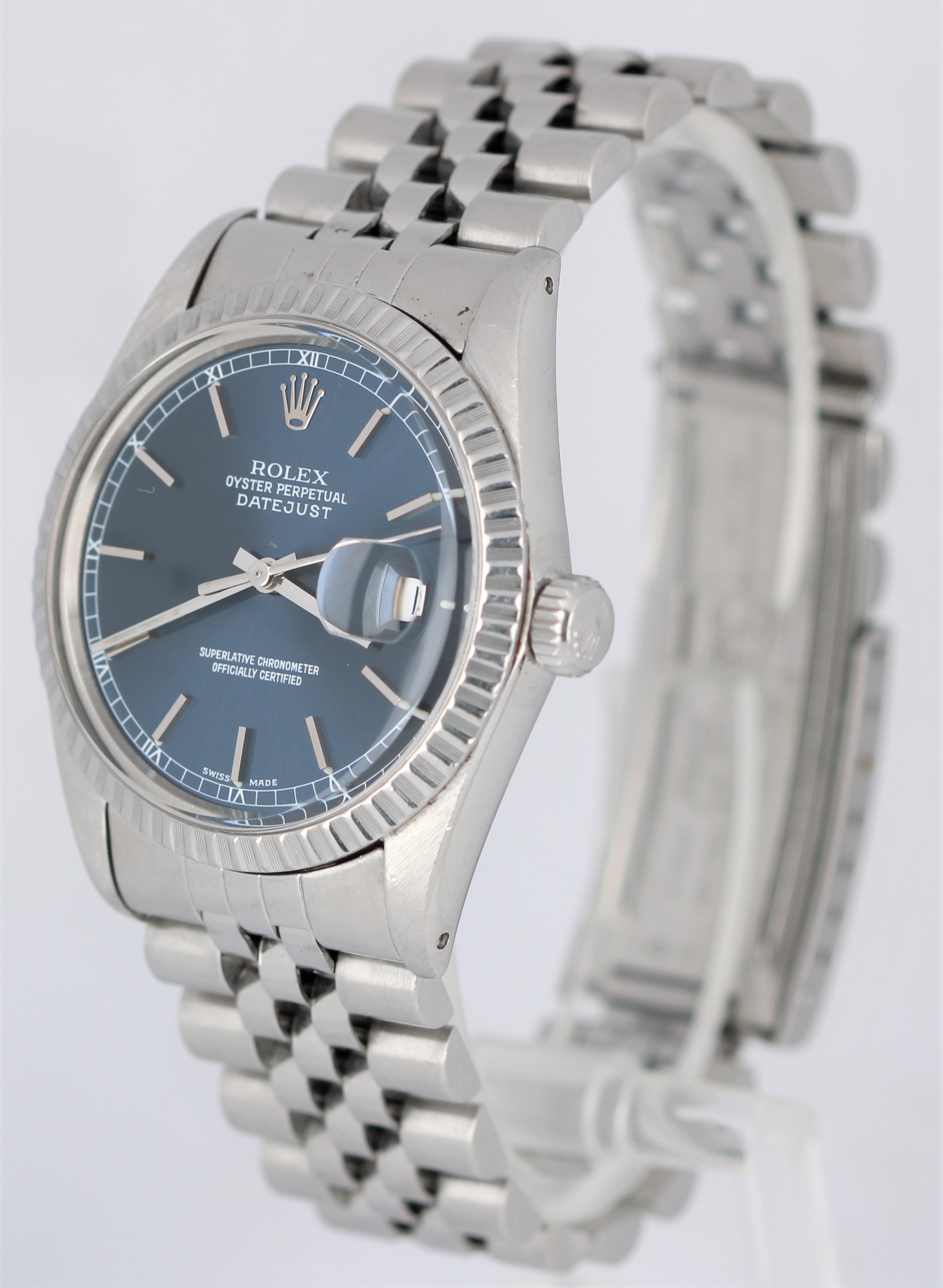 Vintage Rolex DateJust Stainless Steel Blue Dial 36mm Jubilee 16030 Watch