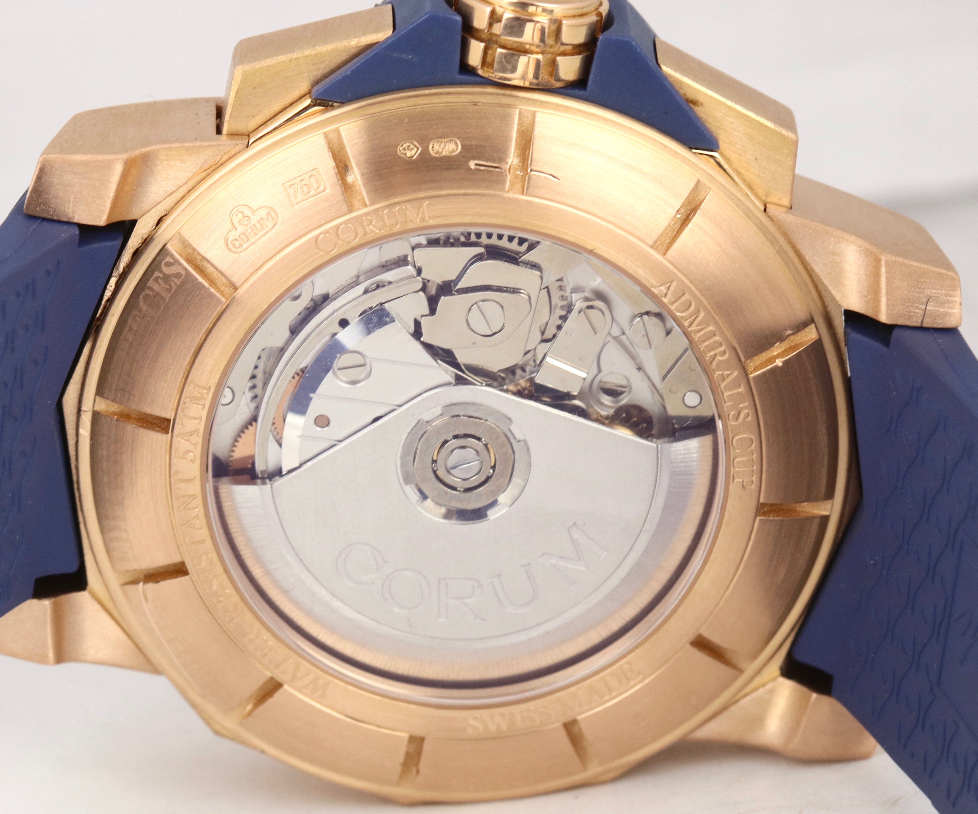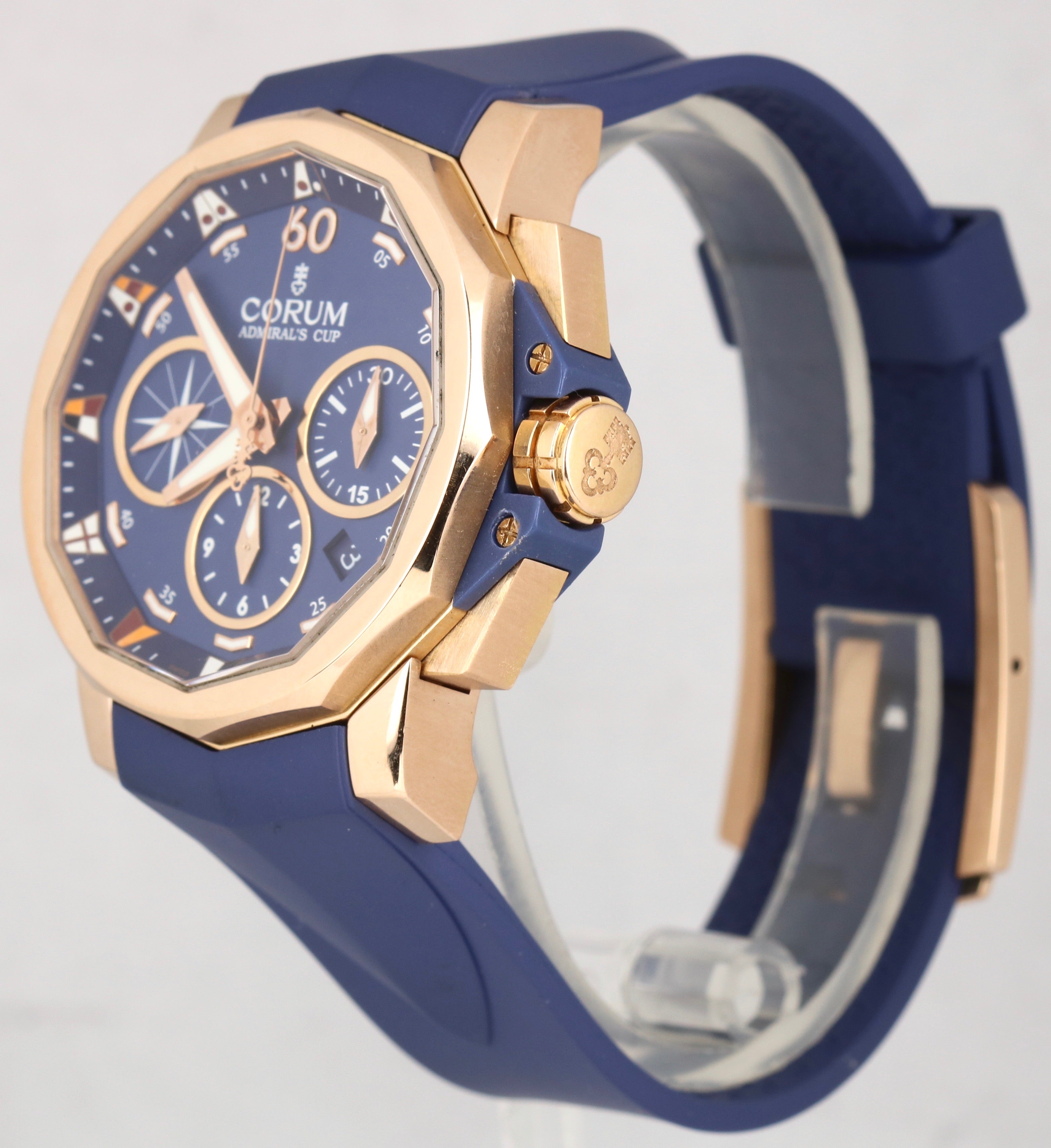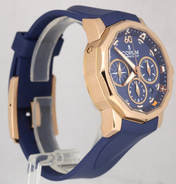 Corum Admiral's Cup Challenge 44mm Blue 18K Rose Gold Chronograph 01.0023 Watch