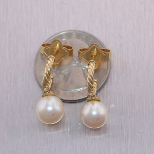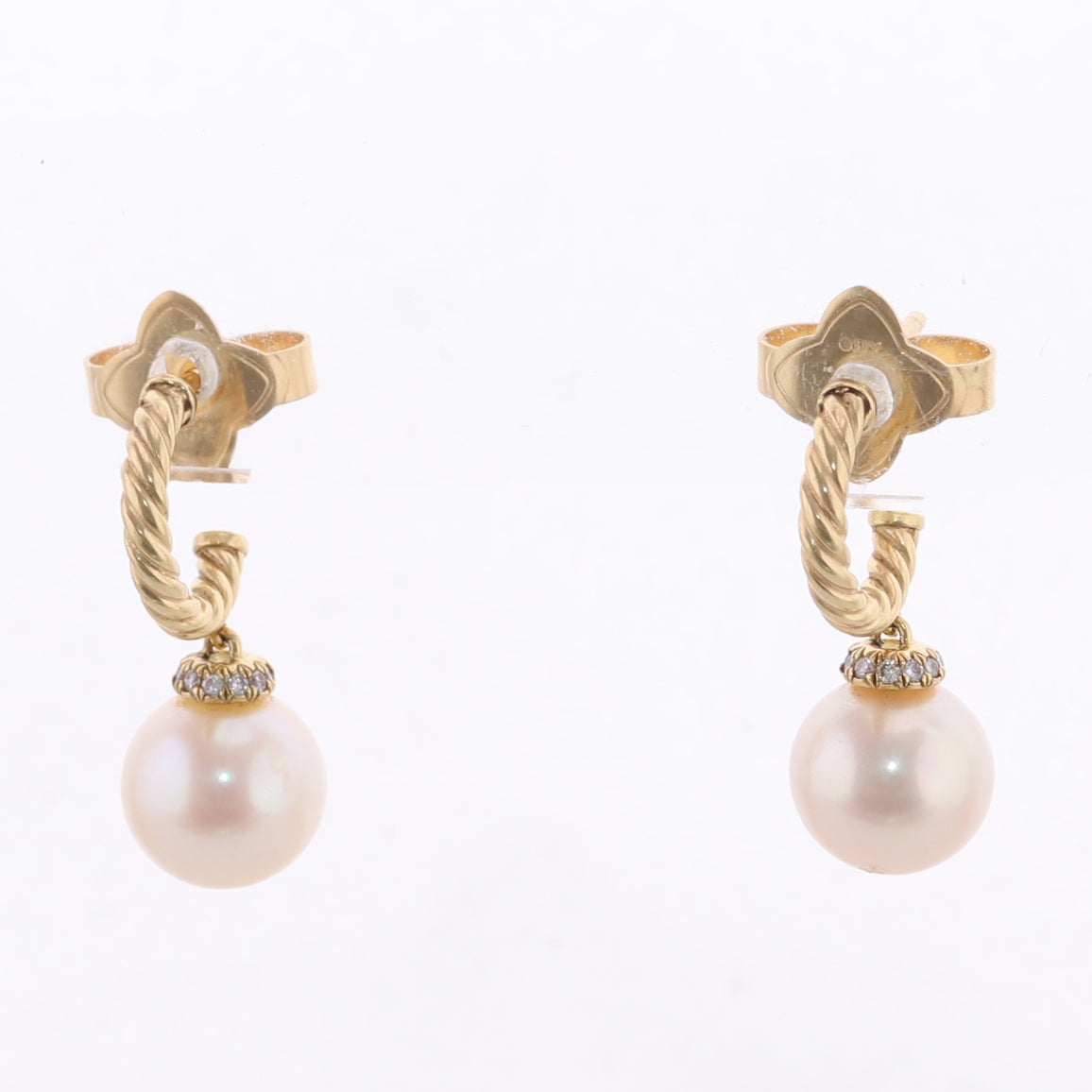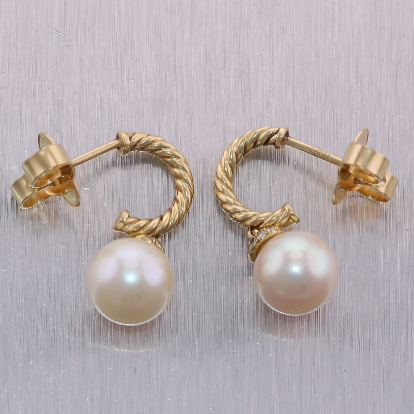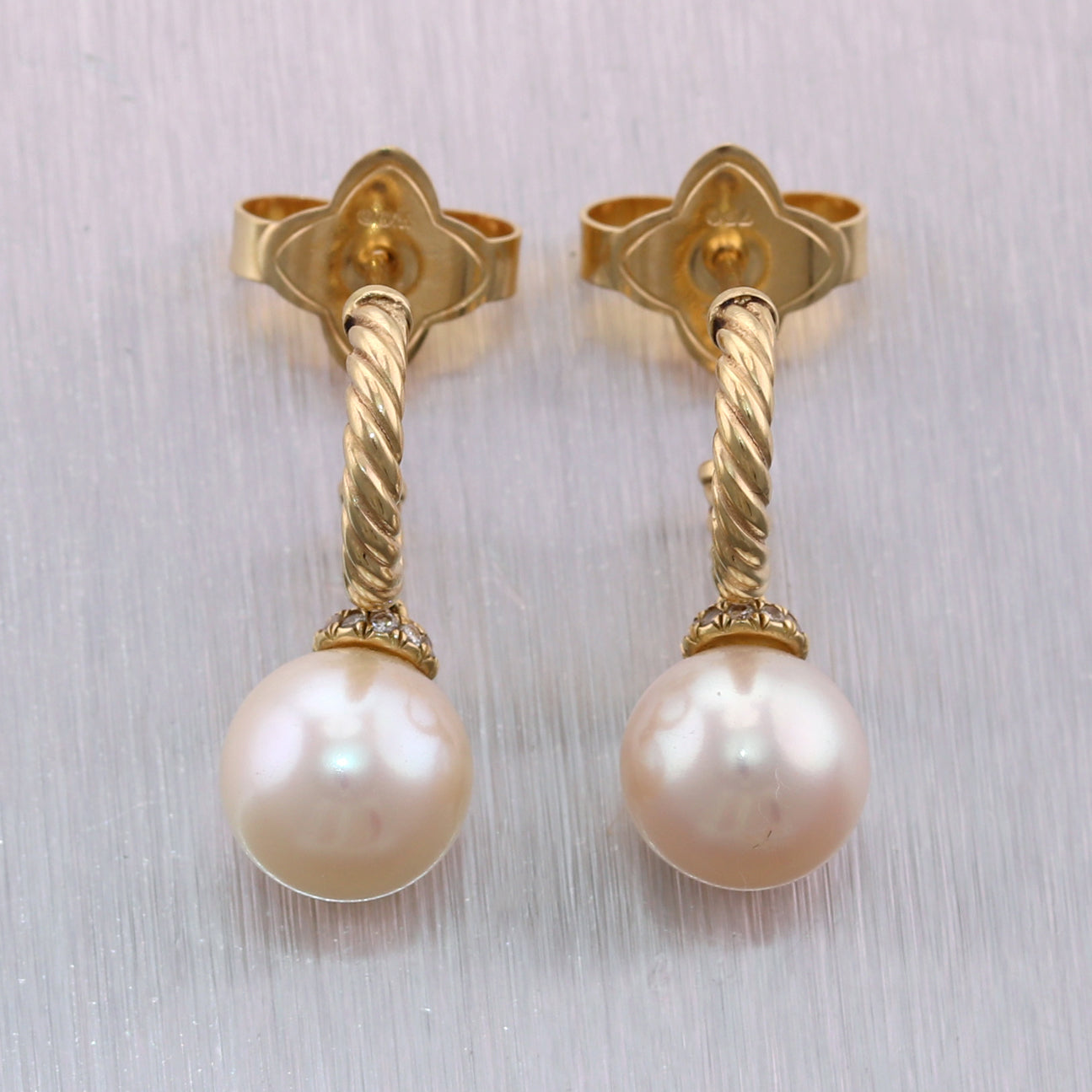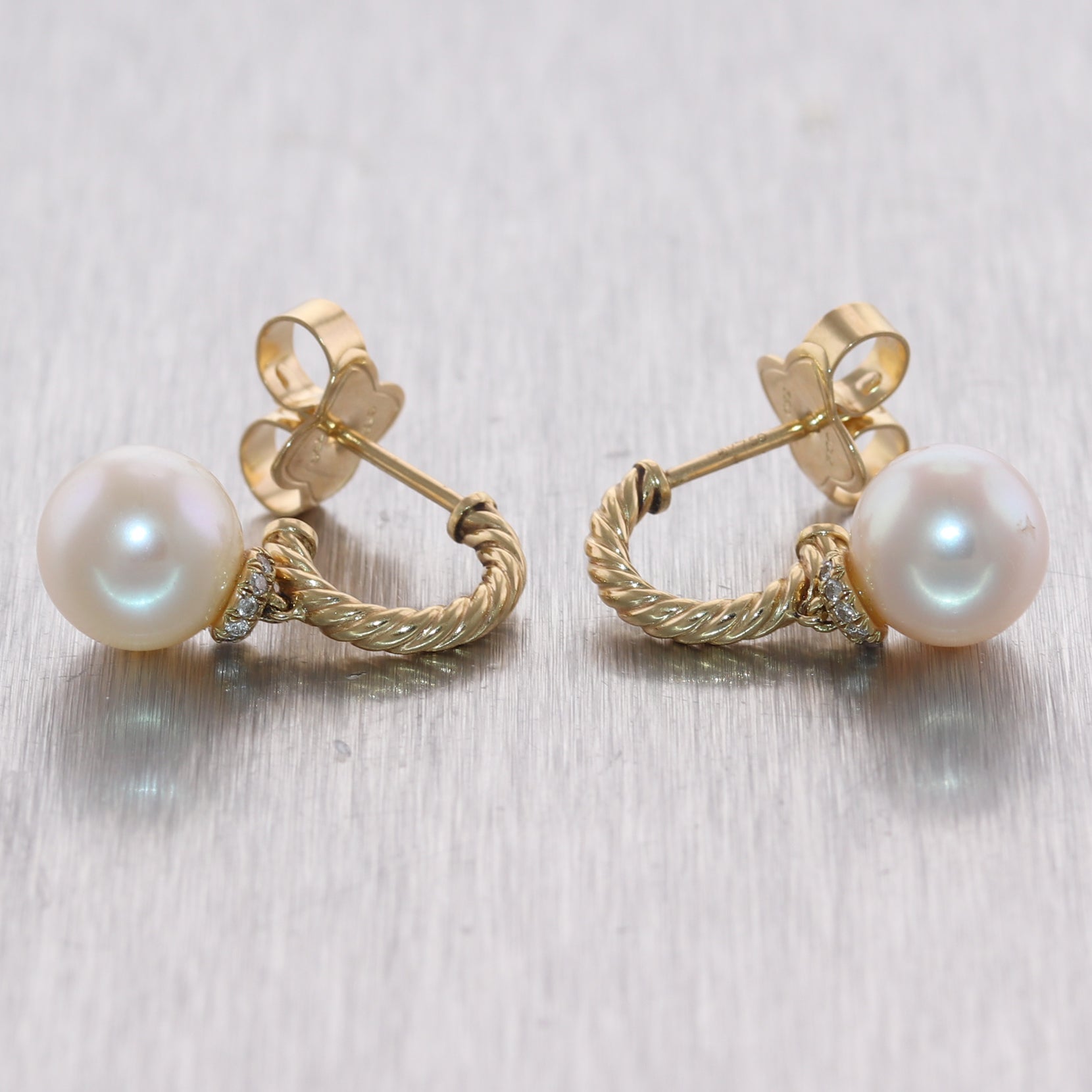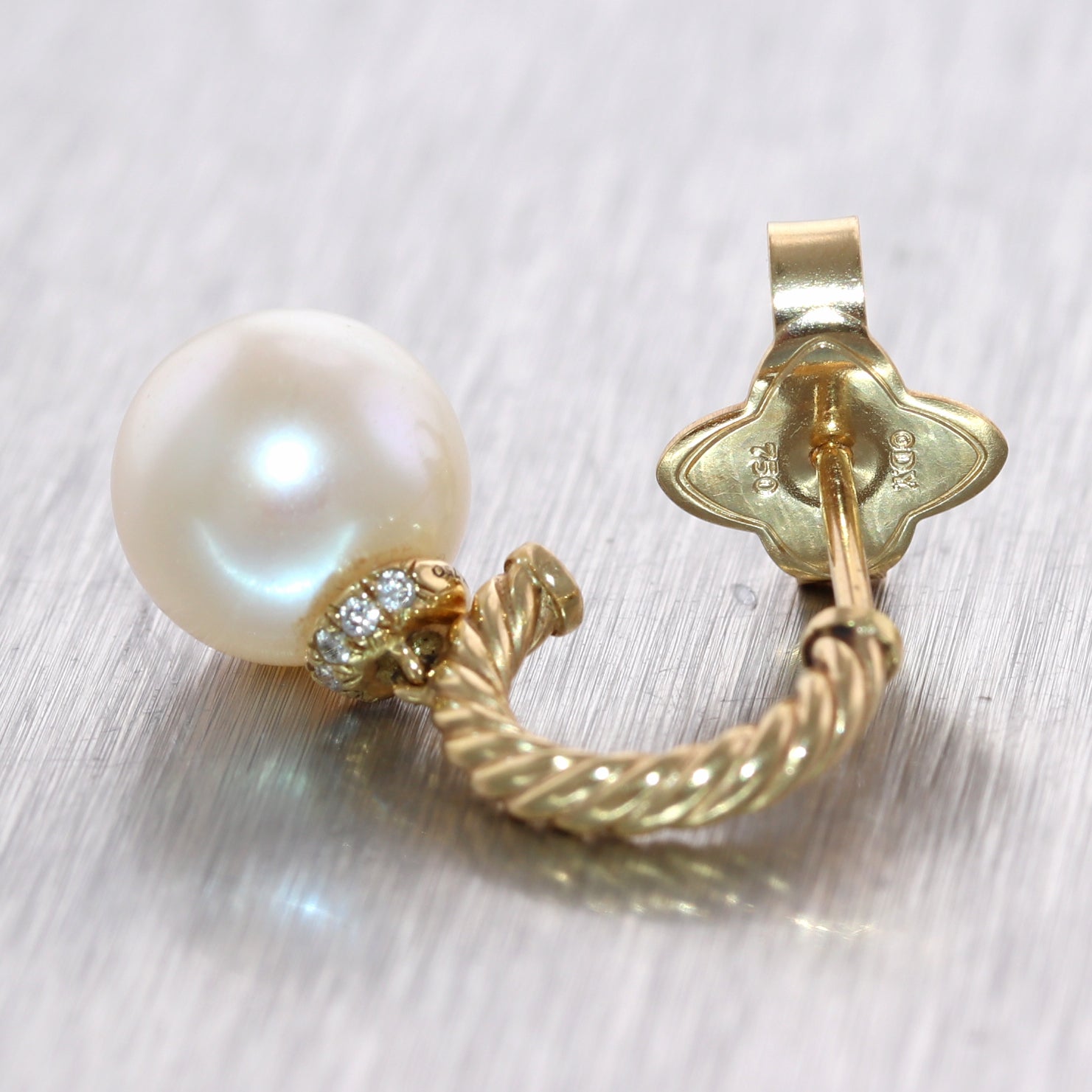For your consideration, an authentic David Yurman 18k Yellow Gold 0.085ctw Diamond & Pearl Solari Hoop Drop Earrings. It will come professionally packaged in a Collectors Coins & Jewelry gift presentation box. H2