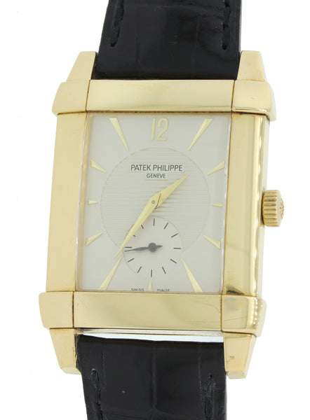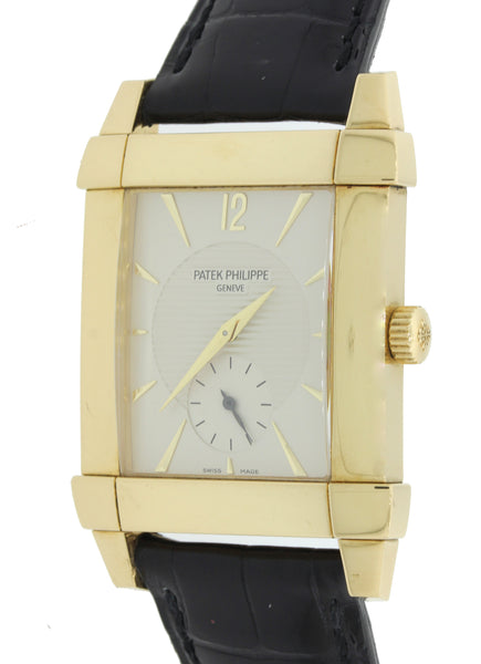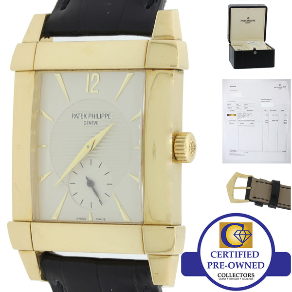 Deco Patek Philippe Gondolo 18k Gold 32mm Silver Dial Manual 5111 J Watch w Box