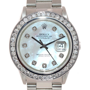 MINT DIAMOND BEZEL Rolex DateJust 36mm 16234 Steel White Gold MOP Diamond Dial Date Watch
