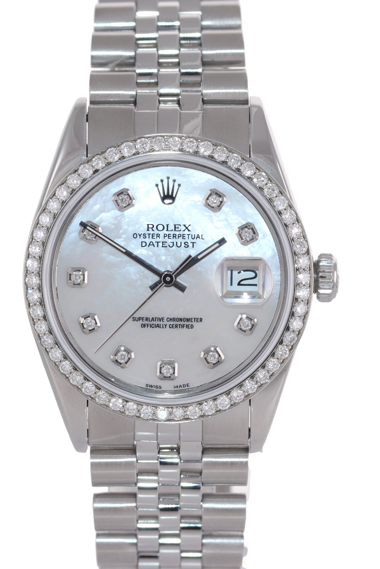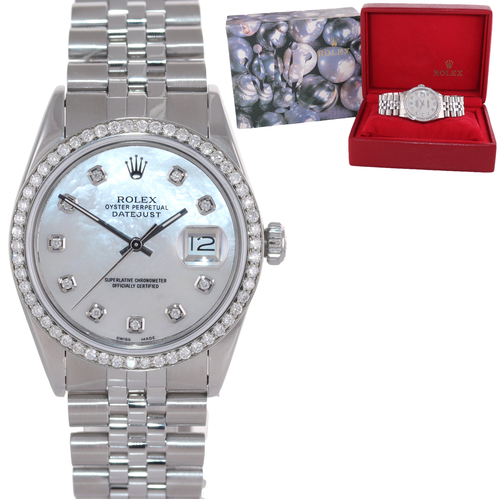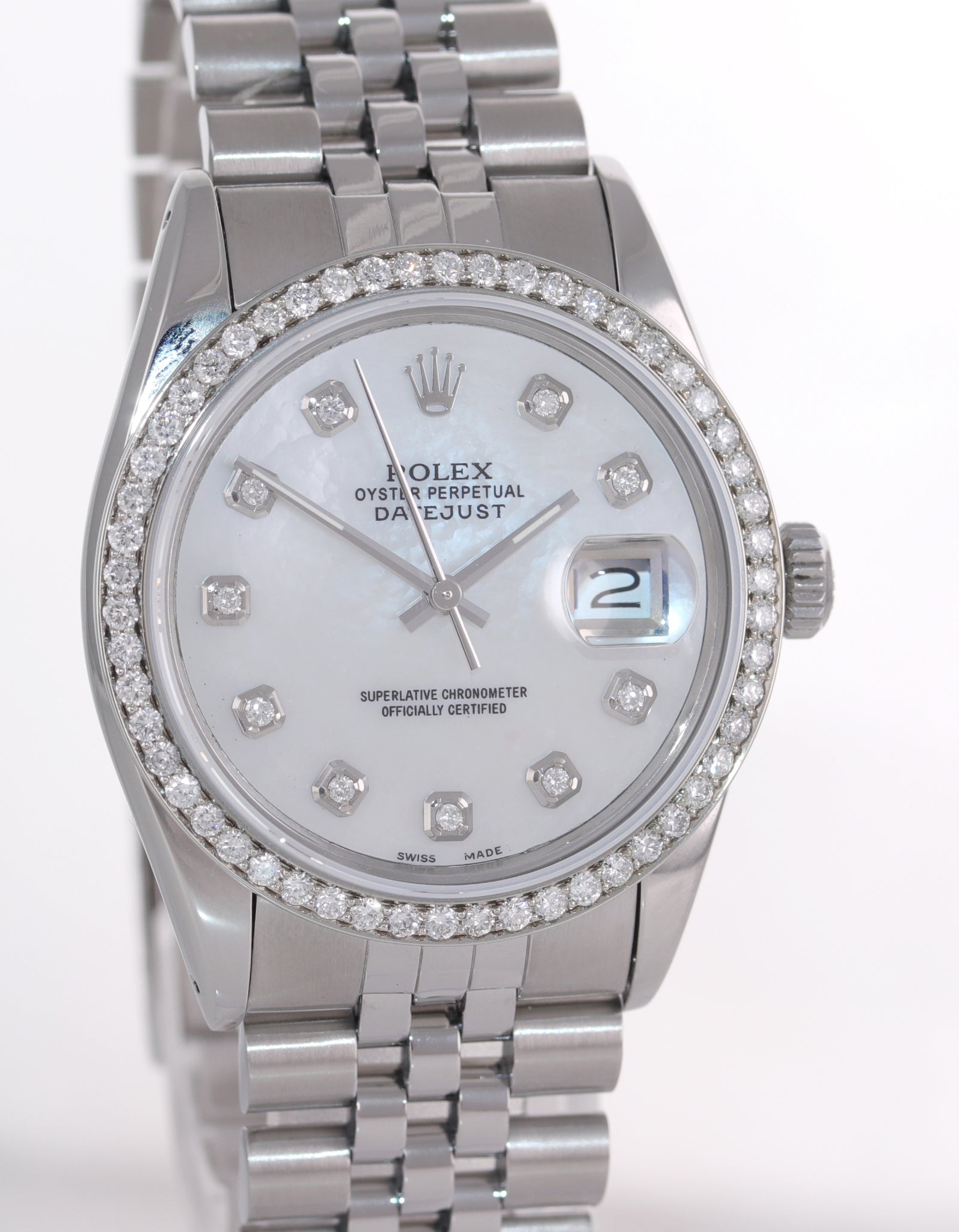 | Dial | Custom Mother of Pearl Diamond Dial with the date at the 3 o'clock |