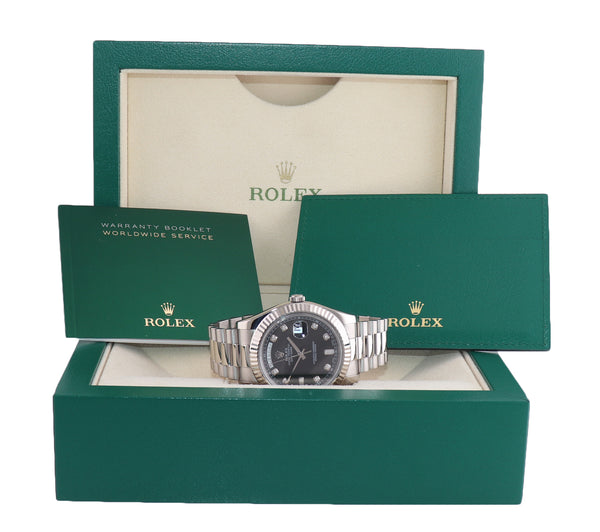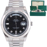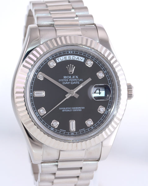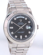 | Dial | Rolex Black Diamond Index Dial with the day at the 12 o'clock and the date at the 3 o'clock |