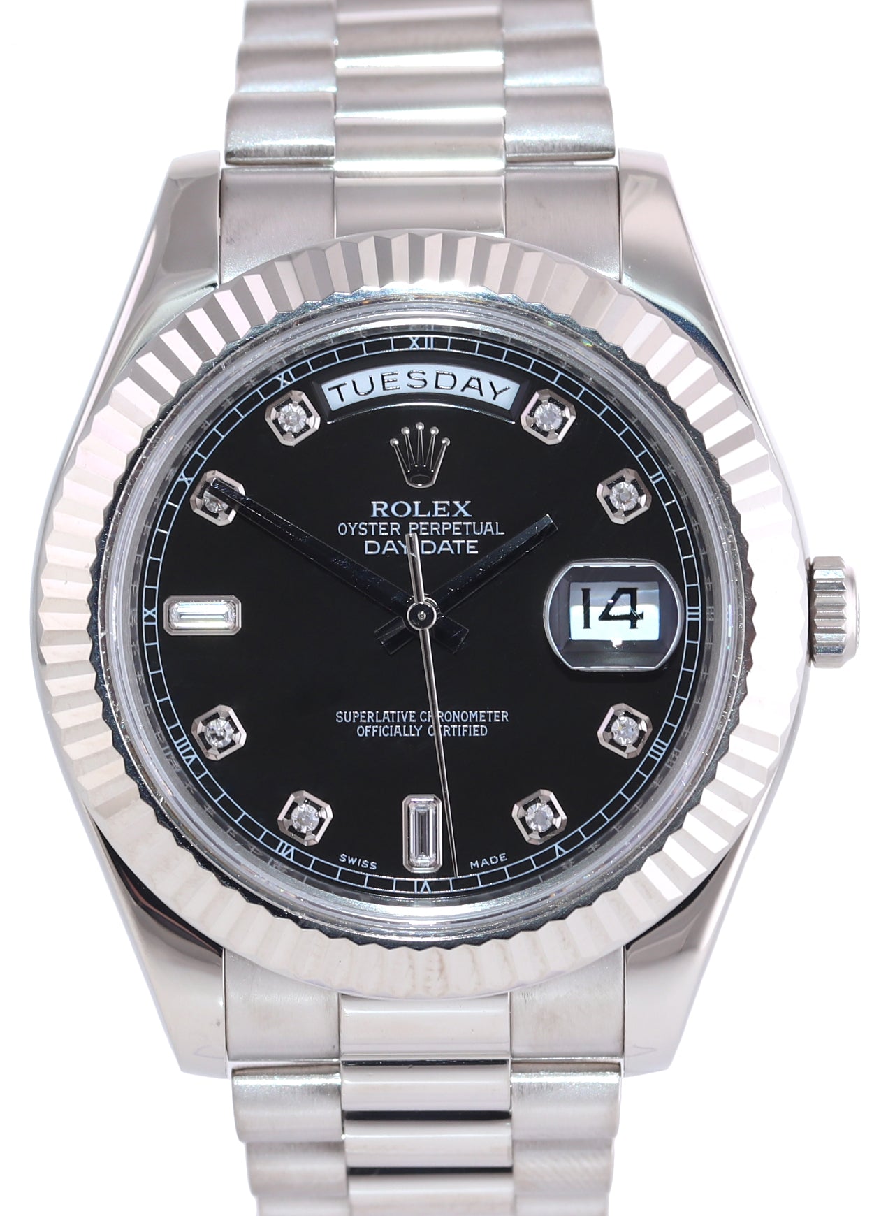 | Bezel | Rolex Solid 18k White Gold Fluted Bezel |