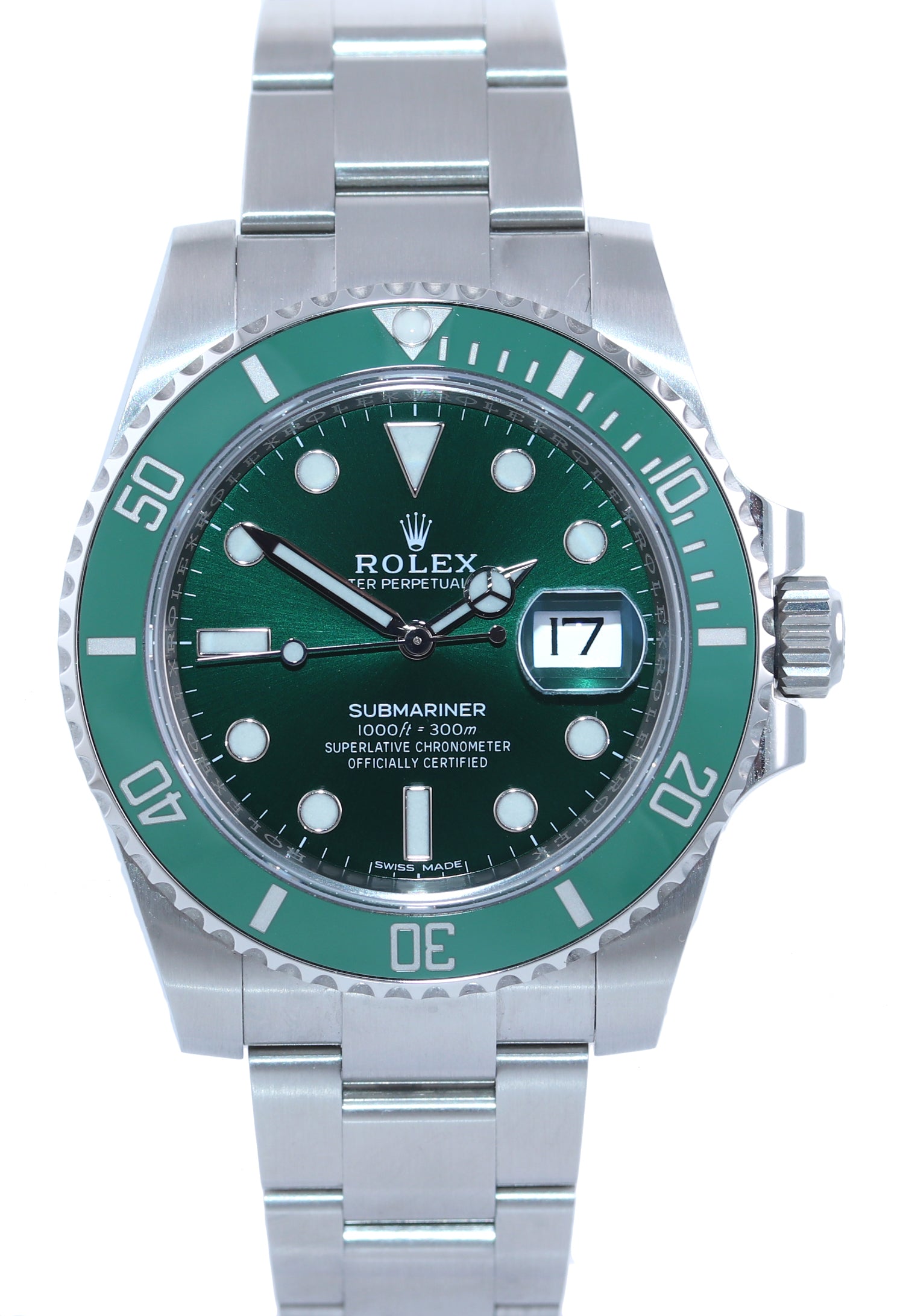 | Bezel | Original Rolex Unidirectional Rotatable 60-Minute Graduated Green Ceramic (Cerachrom) Stainless Steel Bezel |