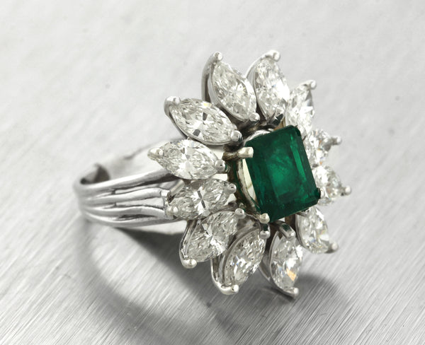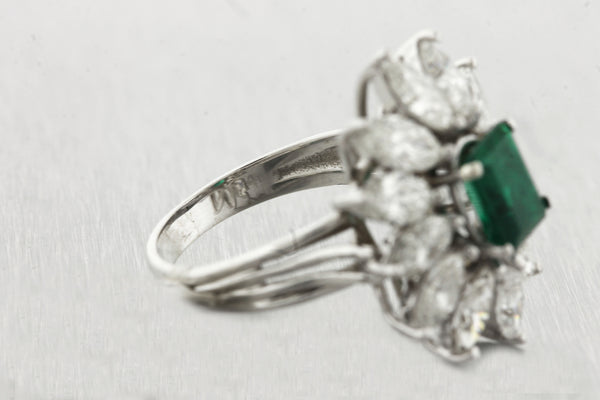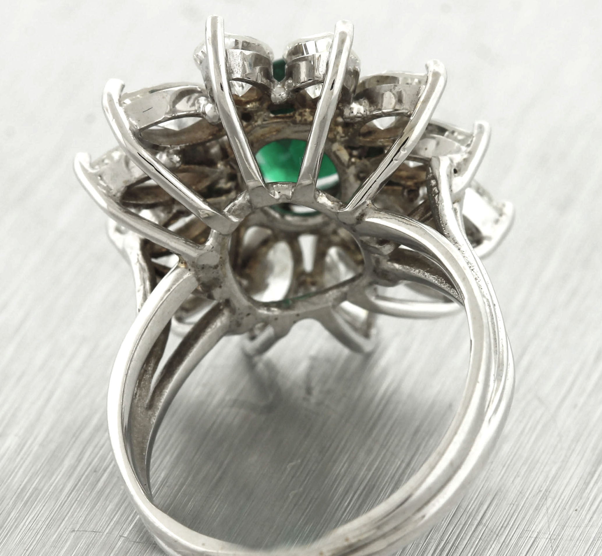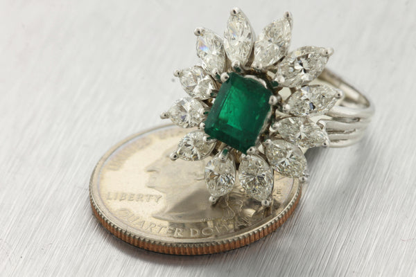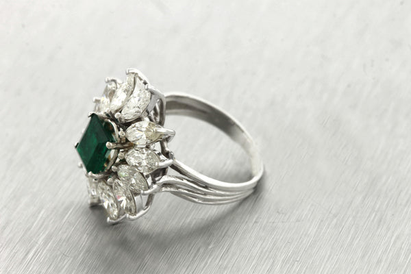 Exquisite Ladies 14K White Gold 4.65ctw Emerald Diamond Flower Cocktail Ring