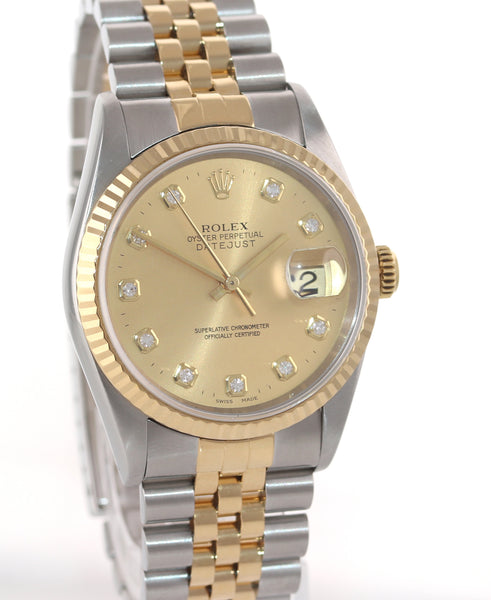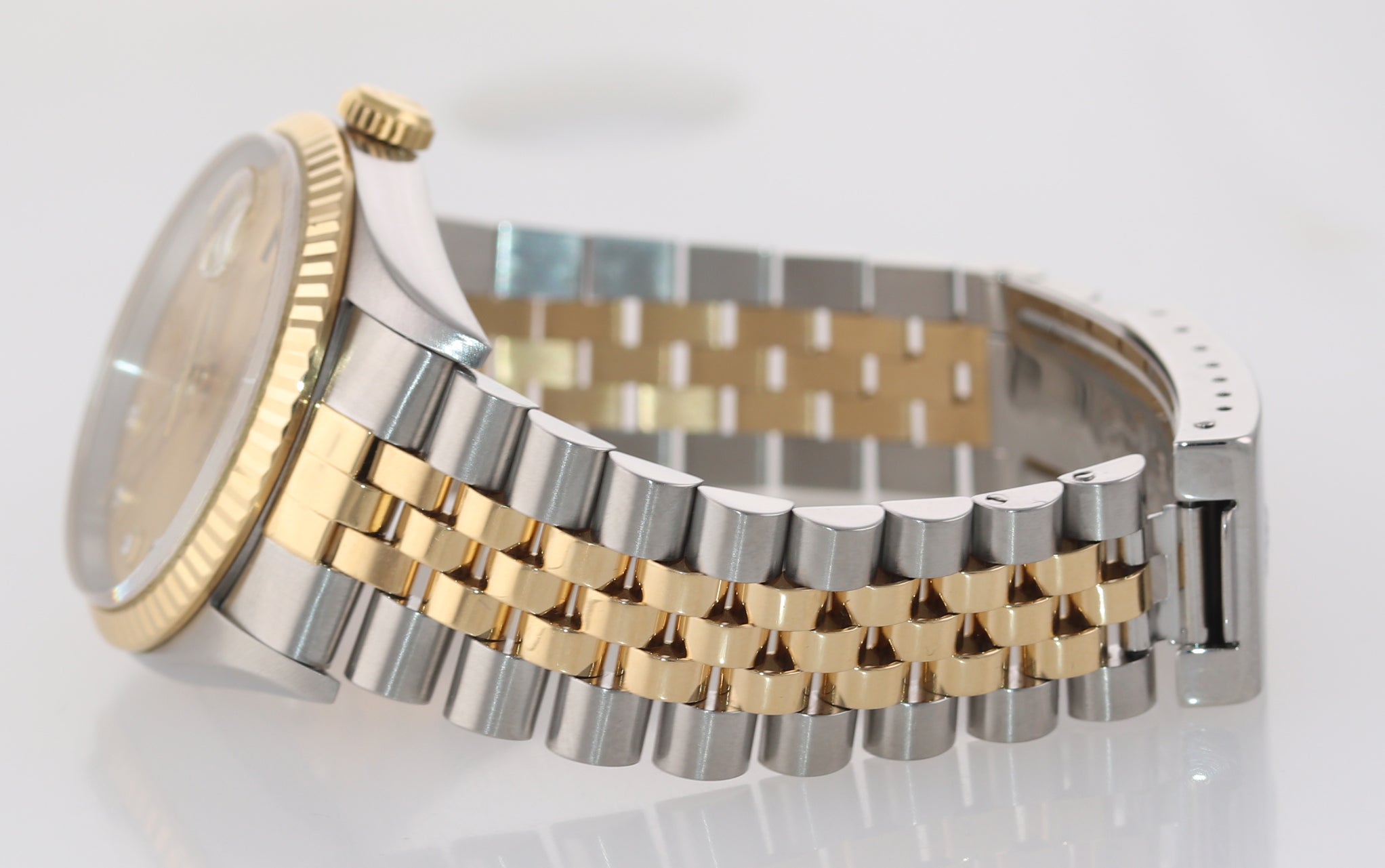 | Dial | Original Rolex Champagne Diamond Dial with the date at the 3 o'clock |