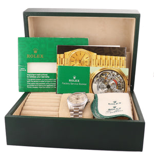 | Dial | Original Rolex Silver Stick Dial with the day at the 12 o'clock and the date at the 3 o'clock |