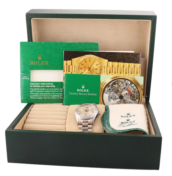 | Band | Original Rolex 18K White Gold Presidential Link Bracelet with a Folding Crown clasp |
