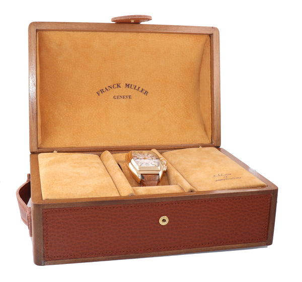 | Band | Original Franck Muller Brown leather and 18K Rose Gold Buckle. |