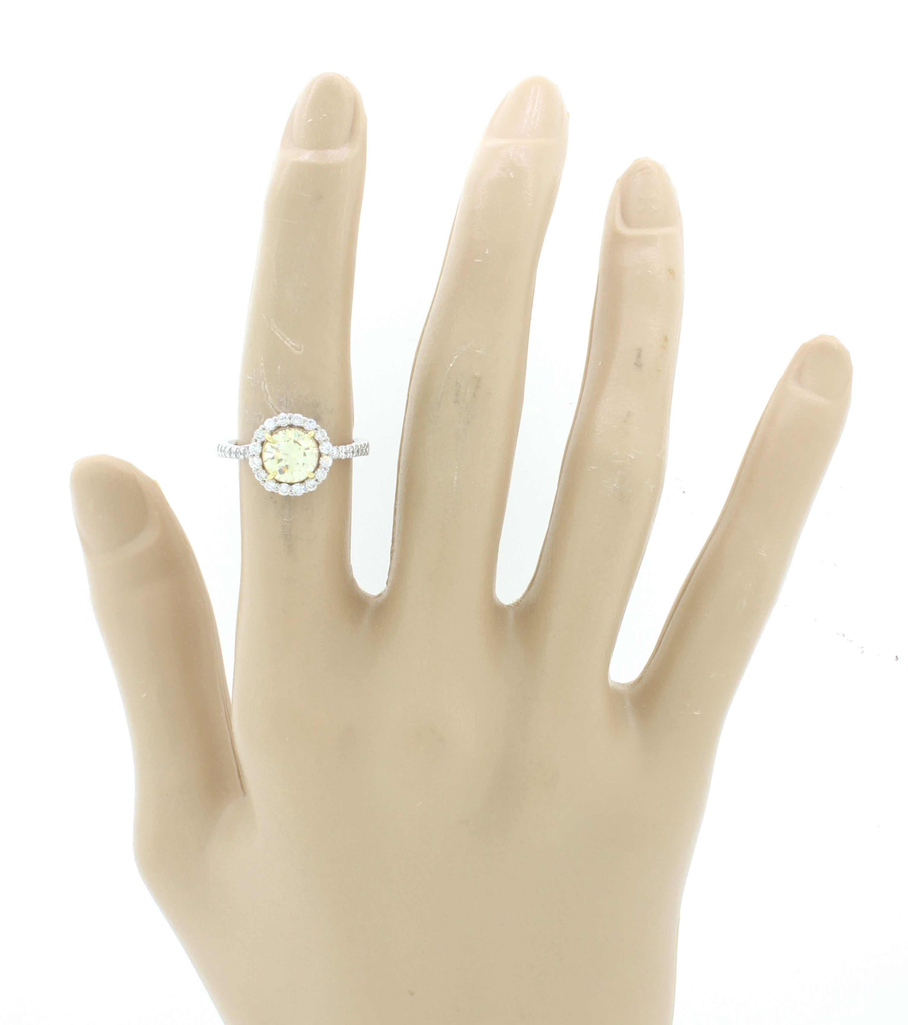 Center Stone: Diamond - Round Cut - Light Yellow (W-X) /VS2 - 1.27ct
