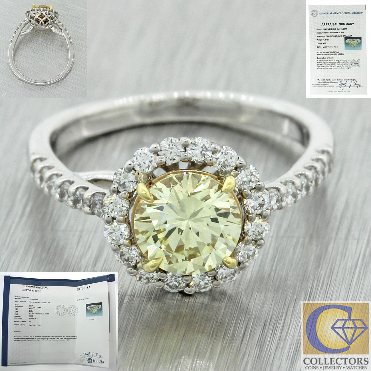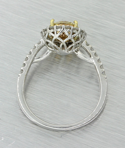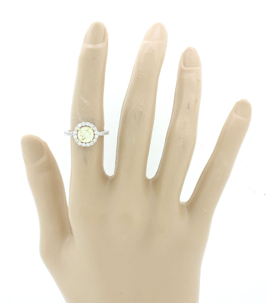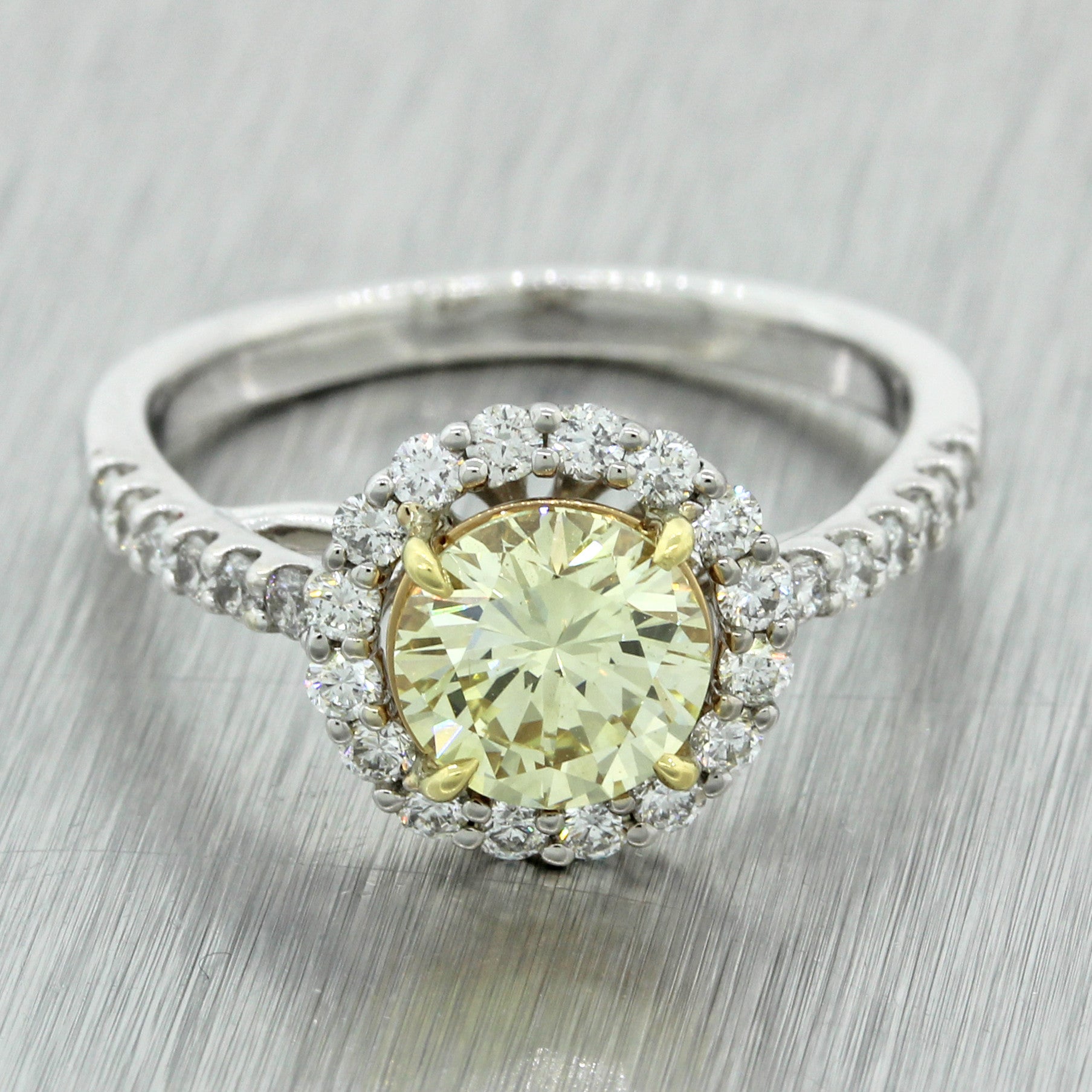 Modern 18k White Gold 1.27ct Fancy Yellow Diamond Halo Engagement Ring EGL $9300
