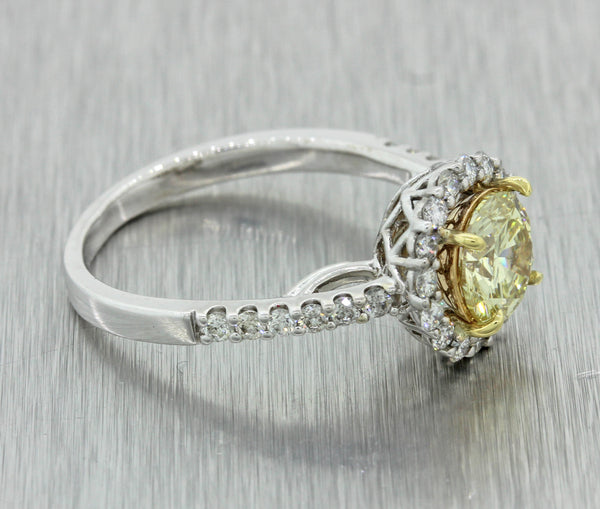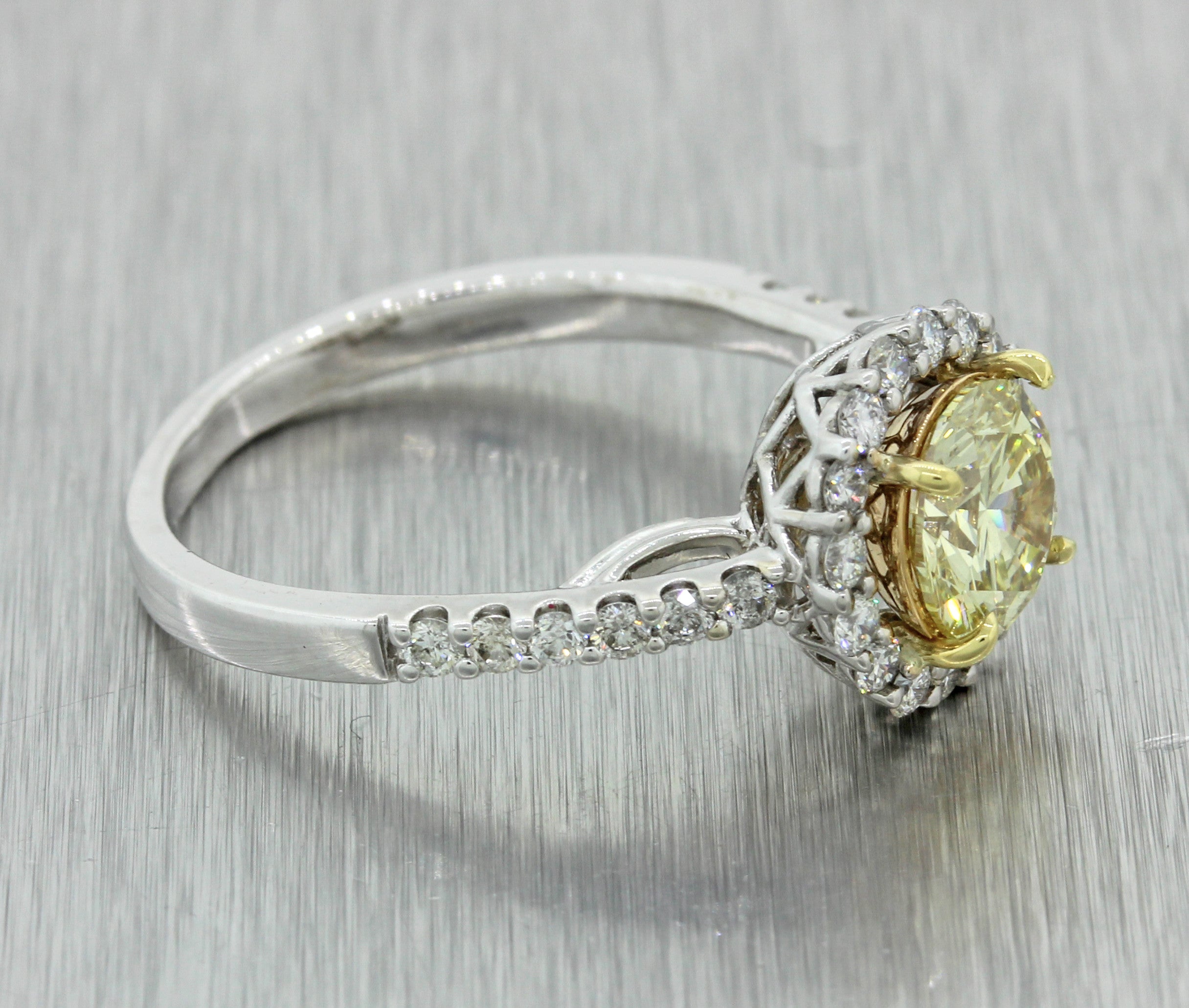 This is a Modern 18k White Gold 1.27ct Fancy Yellow Diamond Halo Engagement Ring EGL. This ring suggested retail price is $9,300 USD. It will come in a lovely ring box for a perfect presentation and our unconditional 30 day money back return policy.