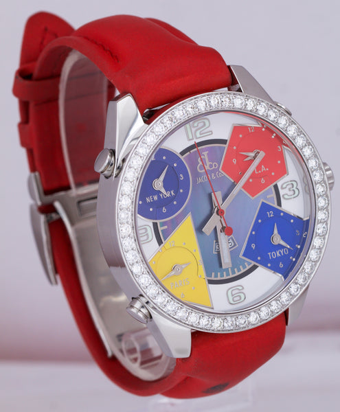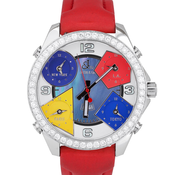 Jacob & Co. Five Time Zones DIAMOND BEZEL DARK MOP 48mm Stainless Steel Watch