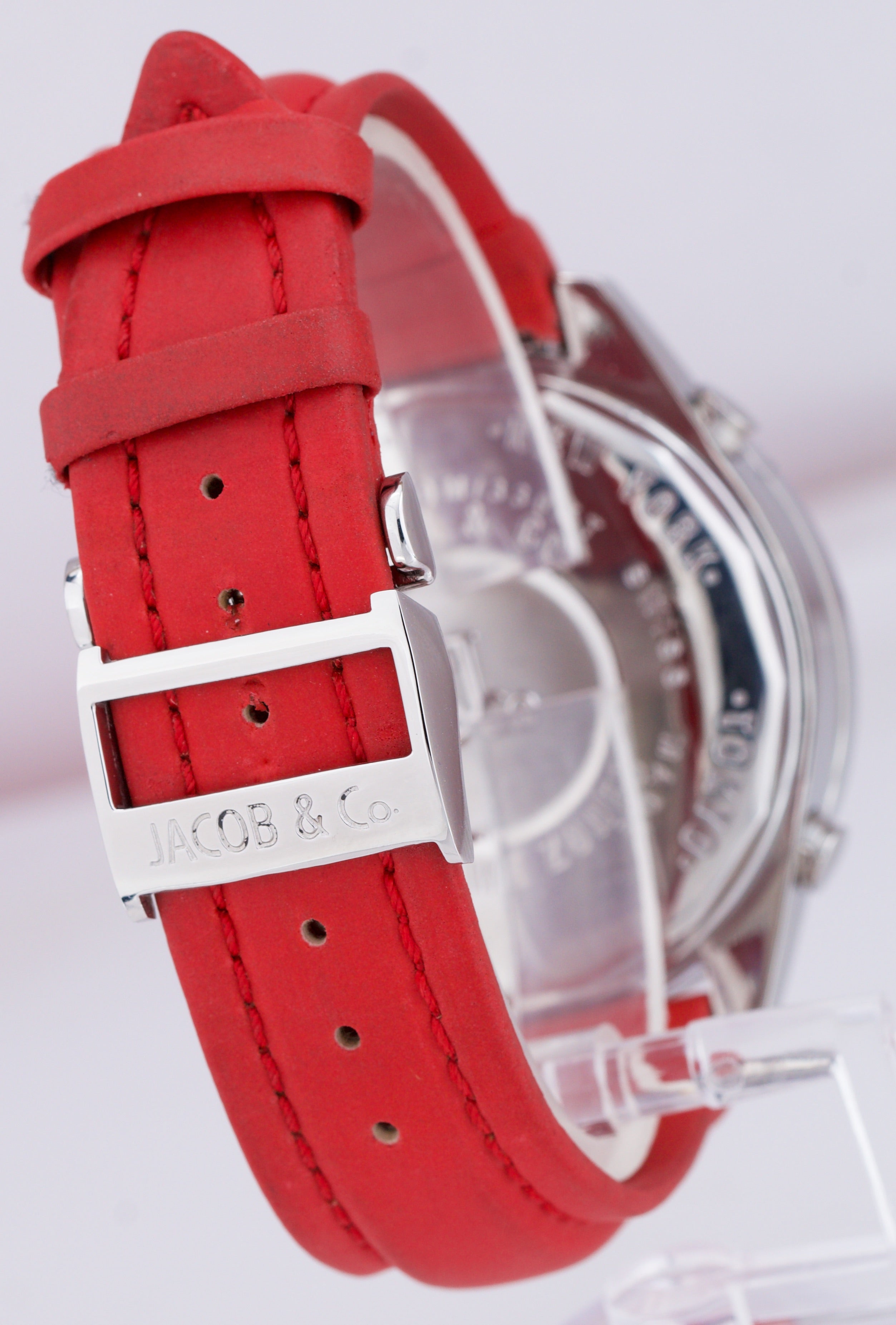 | Band | Original Jacob & Co. Red Leather Strap with a Stainless Steel Folding Deployment Clasp |